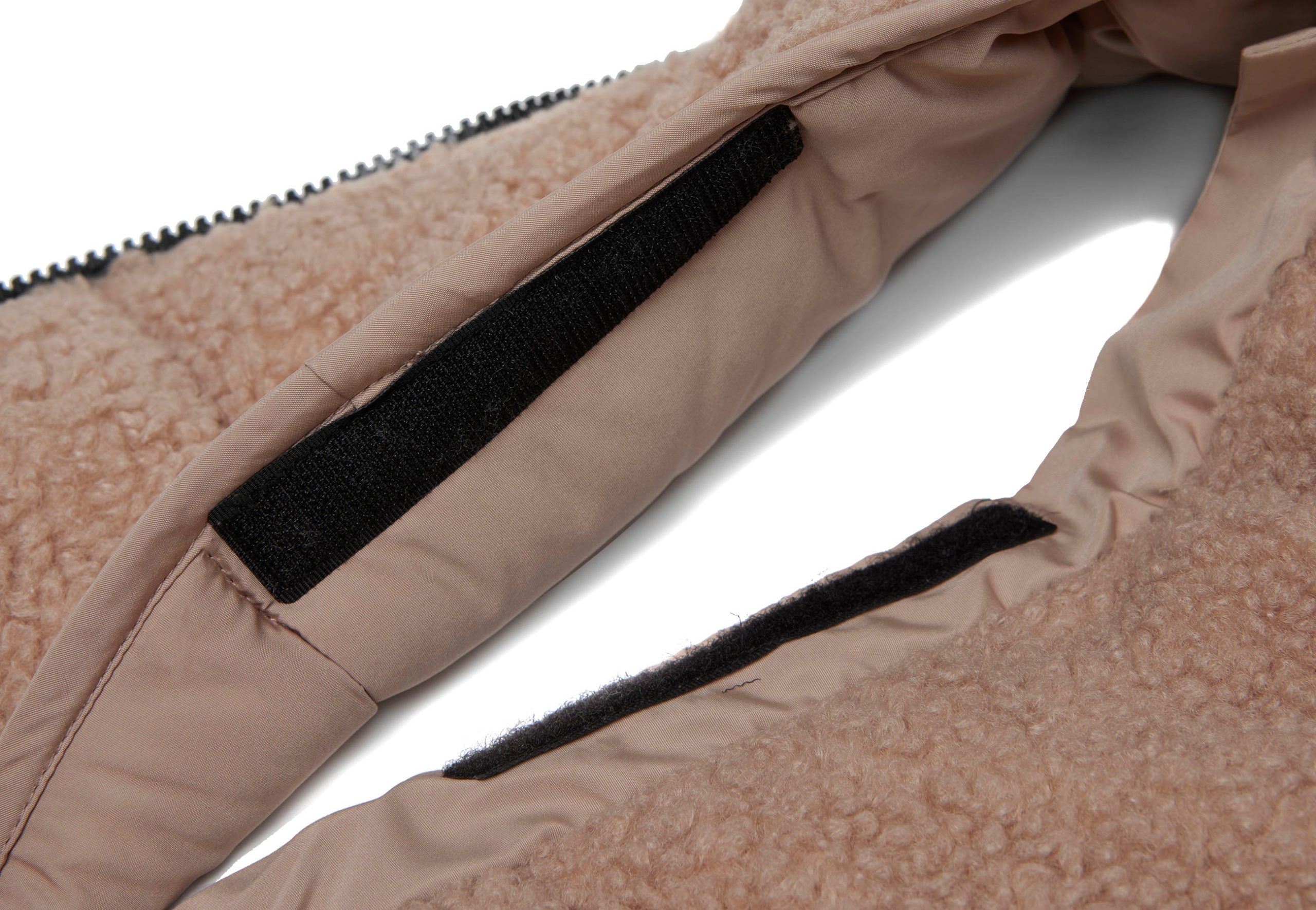 De buitenkant van de voetenzak is gemaakt van 100% polyester. Door de PA coating is deze voetenzak waterafstotend. De binnenkant is gemaakt van het zachte bouclé 100% polyester. Ook de vulling bestaat uit polyester.