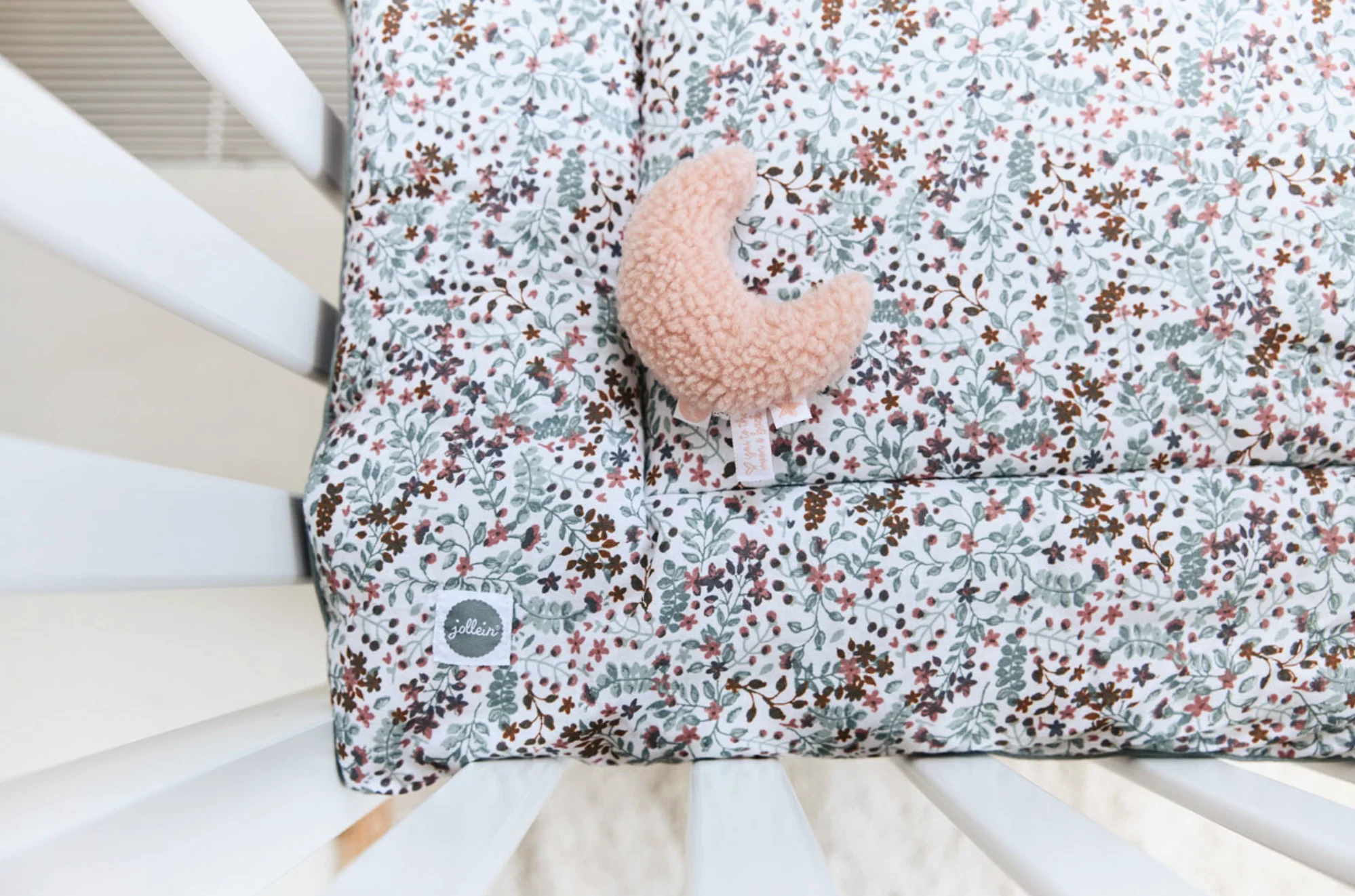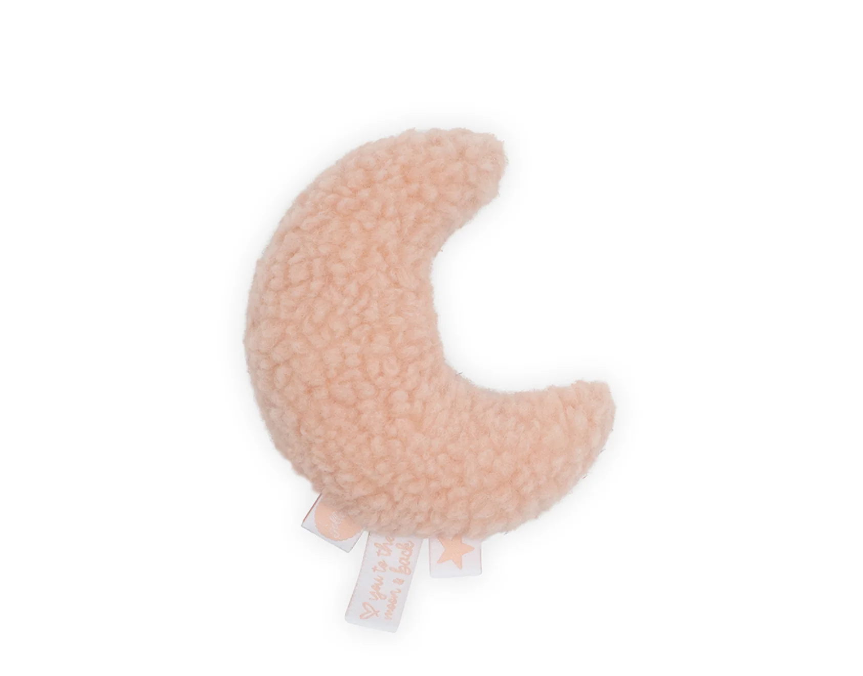 Leuke rammelaar Moon van Jollein. De rammelaar is gemaakt van zachte teddy en 11 cm groot. De maan rammelaar is verkrijgbaar in groen en roze.