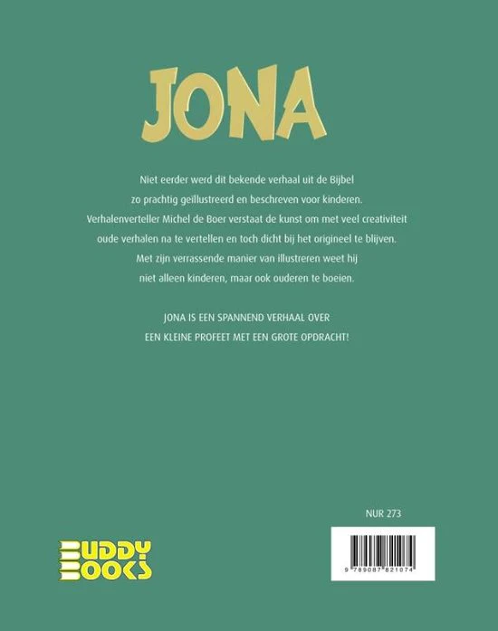 Niet eerder werd dit bekende verhaal uit de Bijbel zo prachtig geïllustreerd en beschreven voor kinderen. Verhalenverteller Michel de Boer verstaat de kunst om met veel creativiteit oude verhalen na te vertellen en toch dicht bij het origineel te blijven. Met zijn verrassende manier van illustreren weet hij niet alleen kinderen, maar ook ouderen te boeien. Jona is een spannend verhaal over een kleine profeet met een grote opdracht!