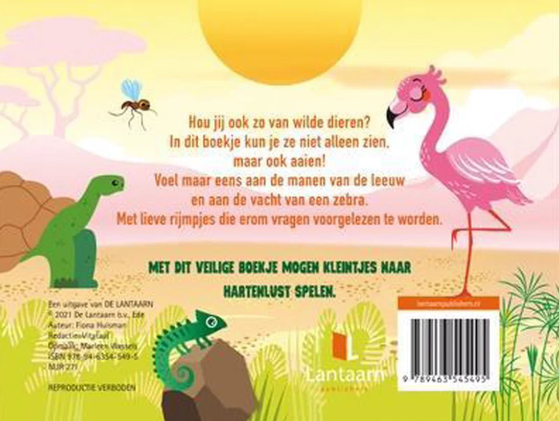 Hou jij ook zo van wilde dieren? In dit boekje kun je ze niet alleen zien, maar ook aaien! Voel maar eens aan de manen van de leeuw en aan de vacht van een zebra. Met lieve rijmpjes die erom vragen om voorgelezen te worden! Lees samen, ontdek en leer! Bekijk ook de andere thema’s in deze serie.