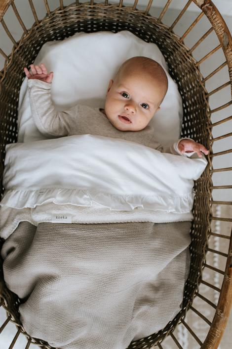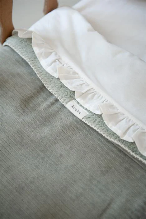 Val jij ook voor de dromerige Ruffle sheet? Met het ruffle randje dat boven de deken uitpiept, maak je een romantische styling compleet of voeg je net dat dromigere detail toe aan je stoere inrichting. Combineer de Ruffle sheet met je favoriete Koeka deken.