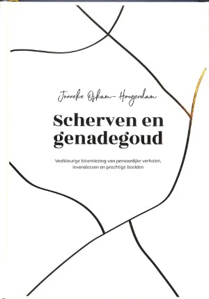 Scherven en genadegoud is een veelkleurige bloemlezing van levens-verhalen, quotes, foto’s, recepten en interviews.