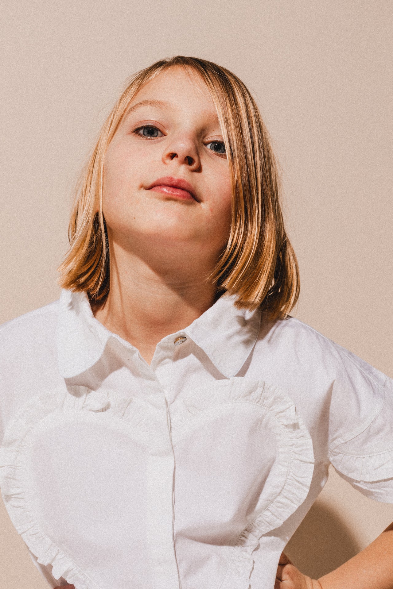 Deze unieke witte oversized blouse is een absolute must-have voor elk modebewust meisje. Het opvallende hartdesign op de voorkant voegt een speelse en moderne twist toe aan de klassieke streepjes. Gemaakt van ademende, comfortabele materialen, biedt deze blouse niet alleen stijl maar ook draagcomfort.