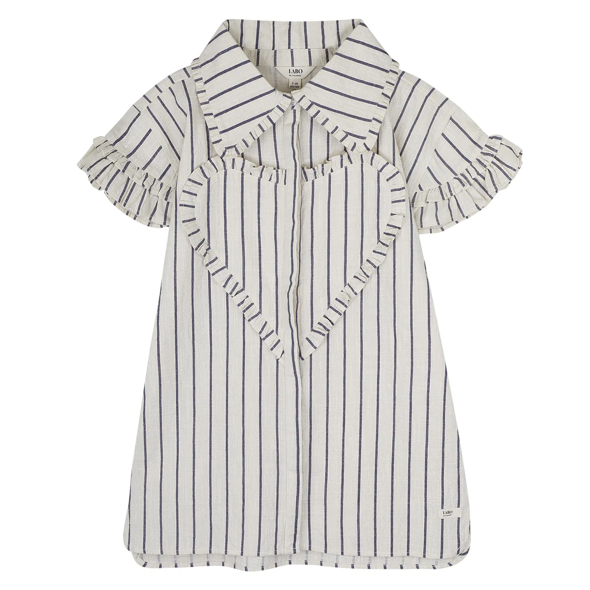 Het bekende hart jurkje Labo de Colores in een prachtige gestreepte zomer uitvoering. Jurk Larah heeft een lavender grey verticaal streep patroon. De strepen zijn lavender van kleur, en valt als een paarsblauwe tint. De ondergrond van jurk Larah is een grijzige toon.