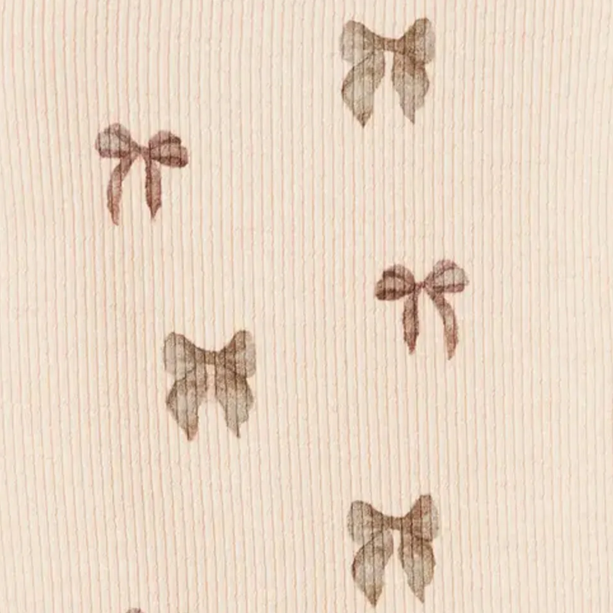 Schattig rompertje voor baby meisjes met een allover strikjes print. Romper Bow heeft ruches bij de schouders voor een extra girly touch. De basis kleur van deze baby romper met strikjes is zacht roze en de strikjes zijn in taupe en donker roze tinten