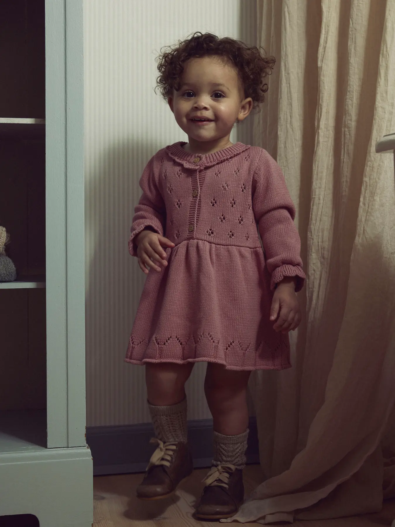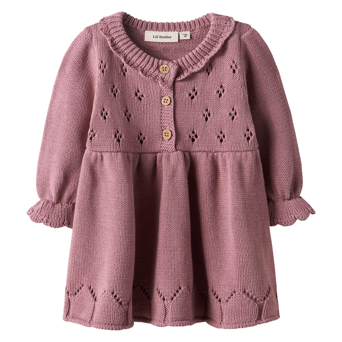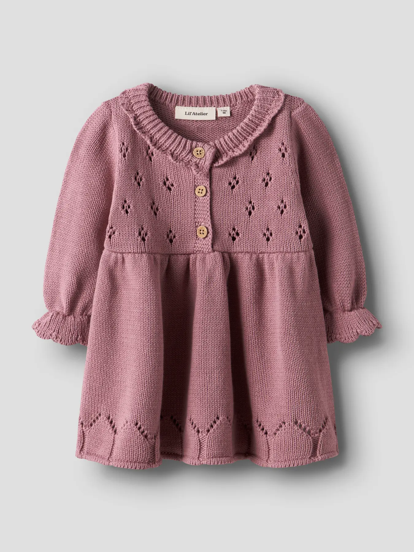 Prachtig gebreide winter jurk voor baby’s en dreumessen van Lil’Atelier. De kleur nostalgia rose is een oudroze/mauve tint. Het breiwerk van jurk Lia kenmerkt zich door opengewerkte design en zachtheid voor een comfortabel gevoel.