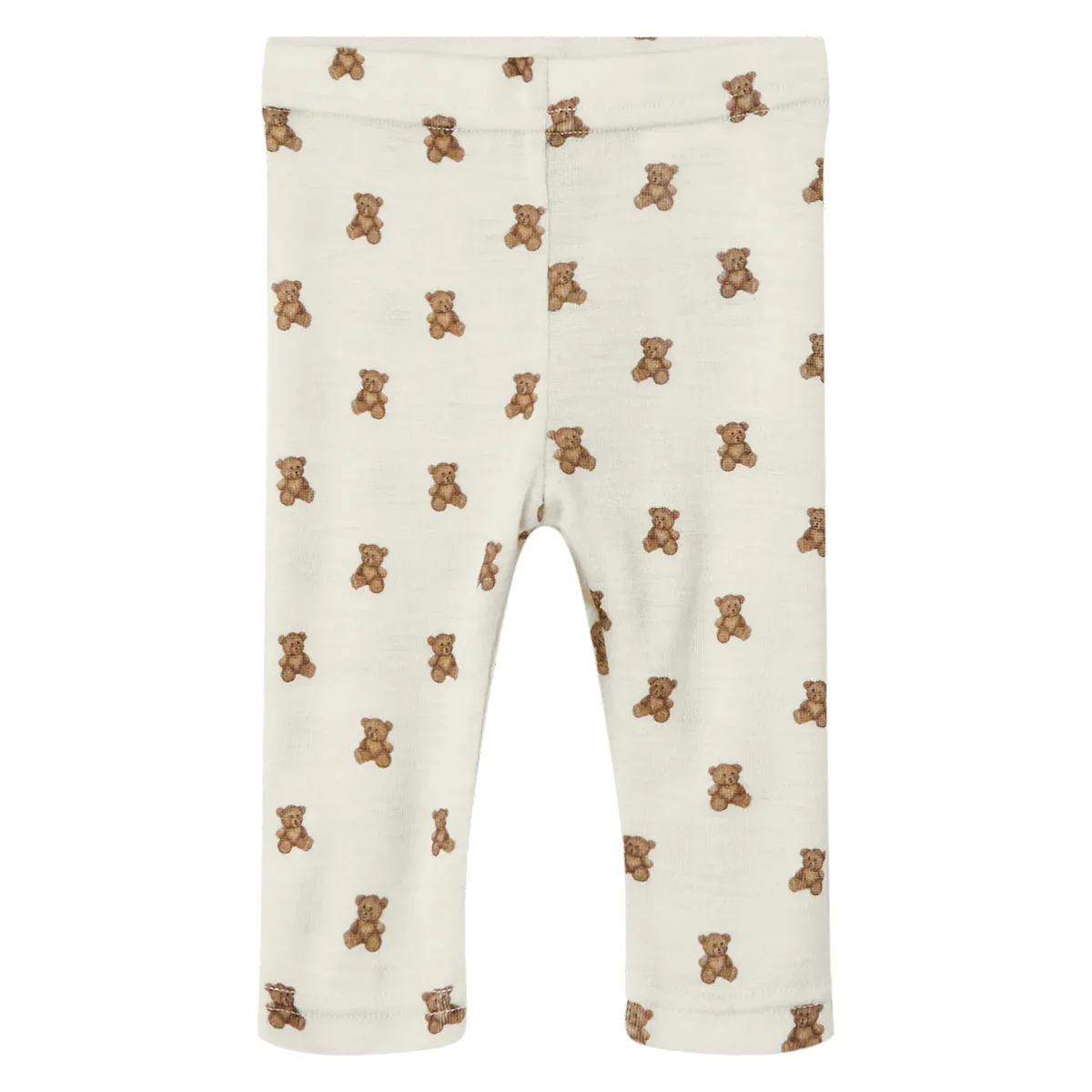 Schattige baby en newborn legging met teddybeertjes. De slim fit baby legging is gemaakt van merino wol en tencel. Legging NBNNALU van Lil’Atelier heeft een all-over print met teddyberen.