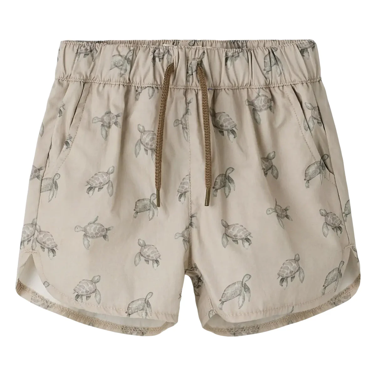 Prachtige jongenszwembroek in beige tint met schildpadden. Swim shorts turtle oxford tan van Lil Atelier heeft een losse pasvorm, een elastische taille met trekkoord.