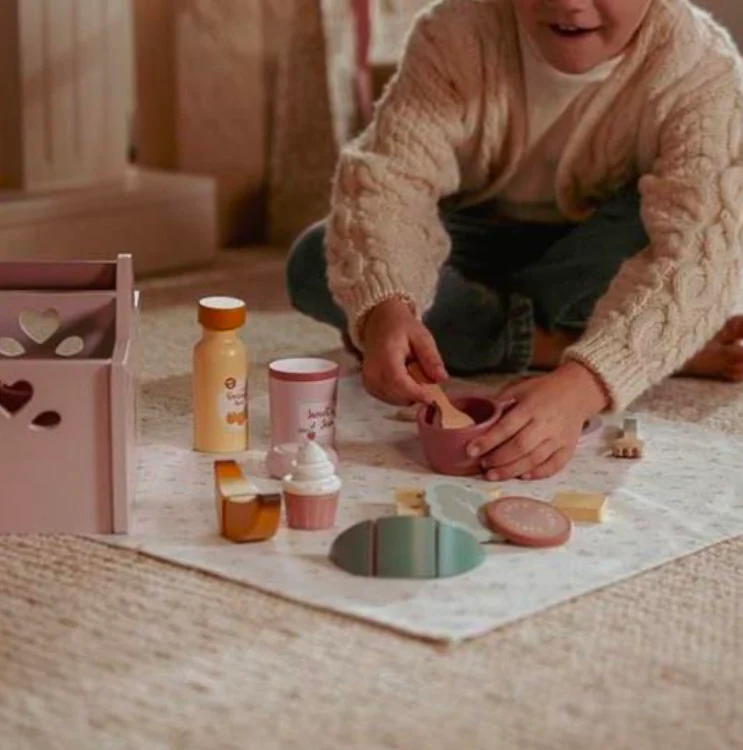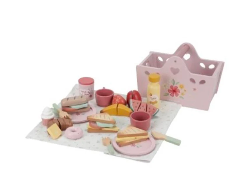 Kijk hoe je kleintje het plezier van picknicken beleeft, heerlijke maaltijden creëert en creativiteit ontwikkelt door rollenspel met deze houten picknick speelset.
