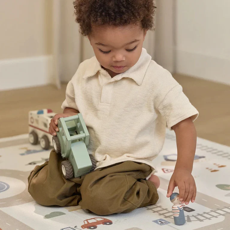 Rijd samen op avontuur met deze houten tractor. De zachte groene kleur en het vriendelijke boertje nodigen uit tot eindeloos speelplezier. Perfect om te combineren met andere voertuigen voor nog meer fantasie. Gemaakt van duurzaam hout met stevige rubberbanden, voor urenlang veilig en vrolijk spelen.