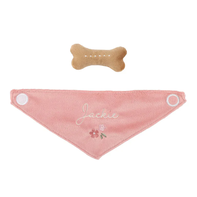 Neem je trouwe viervoeter overal mee naartoe met deze schattige knuffelhond Jackie in een gebloemde draagtas! Door de zachte stof en het lieve snoetje wordt dit al snel het favoriete knuffeldier van je kleintje. De tas heeft een handige uitsparing aan de voorkant, zodat het hondenkopje nieuwsgierig naar buiten kan kijken. Bij de set hoort ook een pluchen botje om heerlijk mee te spelen. Een droom voor elke kleine dierenliefhebber!