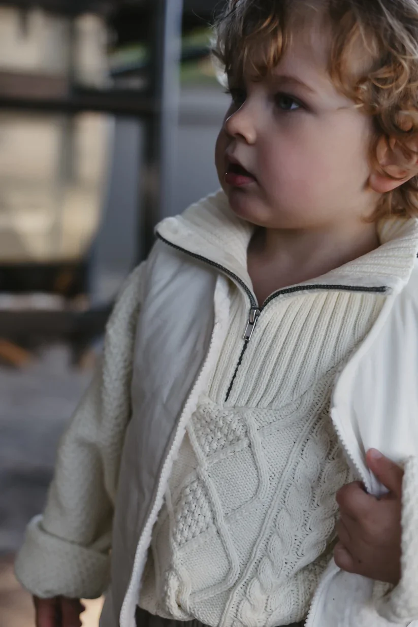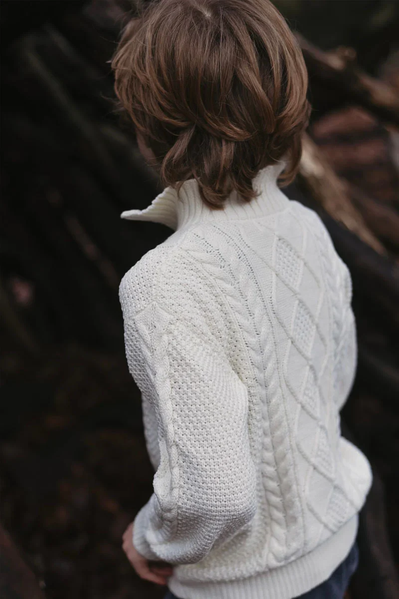 Houd je kleintje warm en stijlvol met de Alex Pull. Deze tijdloze trui, verkrijgbaar in antiek wit en dennengroen, is gemaakt van hoogwaardig breisel voor ultiem comfort. Het klassieke kabelpatroon en de hoge kraag met ritssluiting geven de trui een verfijnde en elegante uitstraling. De Alex pullover van LRDM petits is perfect voor zowel casual als formele gelegenheden en biedt een veelzijdige en stijlvolle optie voor elke jongen.