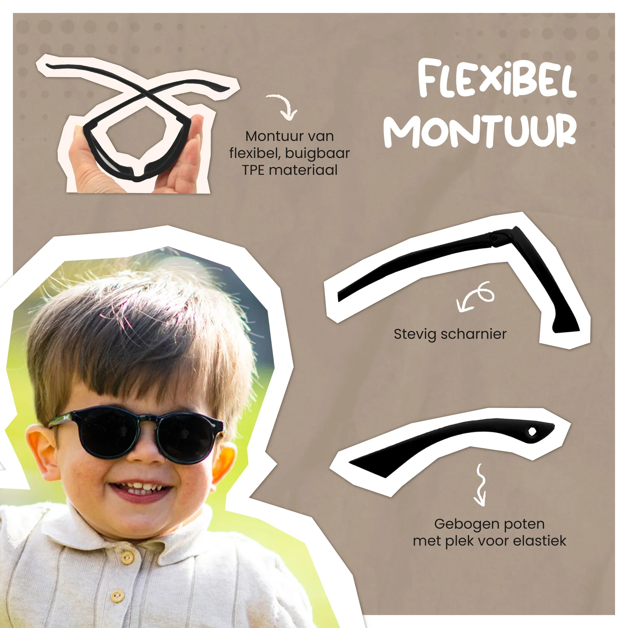 Het montuur van de Maesy zonnebrillen is flexibel en daardoor onbreekbaar is. Verder heeft de zonnebril hele stevige schanieren die niet zomaar kapot te krijgen zijn. Zo gaat de kinderzonnebril lekker lang mee en wordt het niet gesloopt door de ontdekkende kinderhandjes.