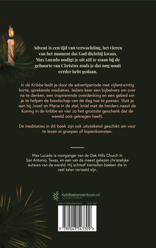 In ‘In de kribbe’ nodigt Max Lucado je uit om getuige te zijn van de geboorte van Christus zoals je die nog nooit eerder hebt gezien. Het boek leidt je door elk van de adventsdagen met een bijbelvers om over na te denken, een inspirerende passage uit enkele van Lucado’s populairste boeken en een gebed om je te helpen de boodschap van de dag toe te passen.