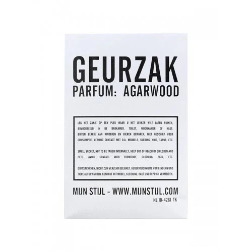 Hip en strak geurzakje van Mijn Stijl in de geur ‘Agarwood‘. Leg het zakje op een plek waar je het lekker wilt laten ruiken, bijvoorbeeld in de badkamer, toilet, woonkamer of kast. Het geurzakje staat ook super leuk in combinatie met de andere producten van Mijn Stijl.
