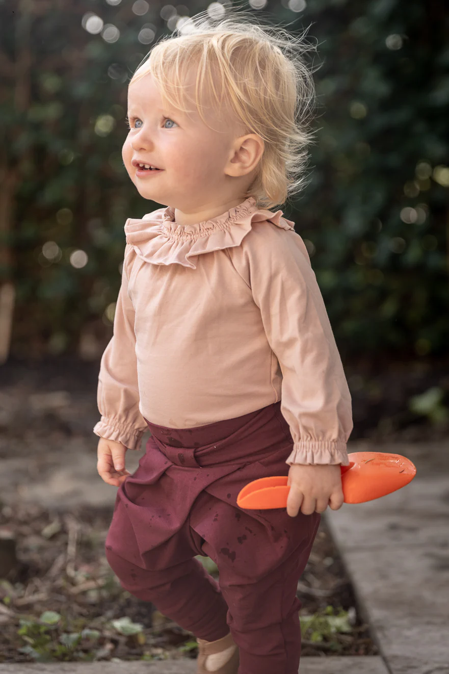 De strik aan de voorkant maakt deze legging anders dan de meeste andere leggings. Echt voor een meisje. Legging bow heeft een mooie brede elastische rand waardoor het super comfortabel draagt. De kleur fig is een mooie winterse wijnrode kleur.