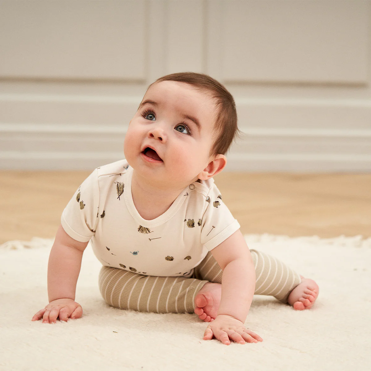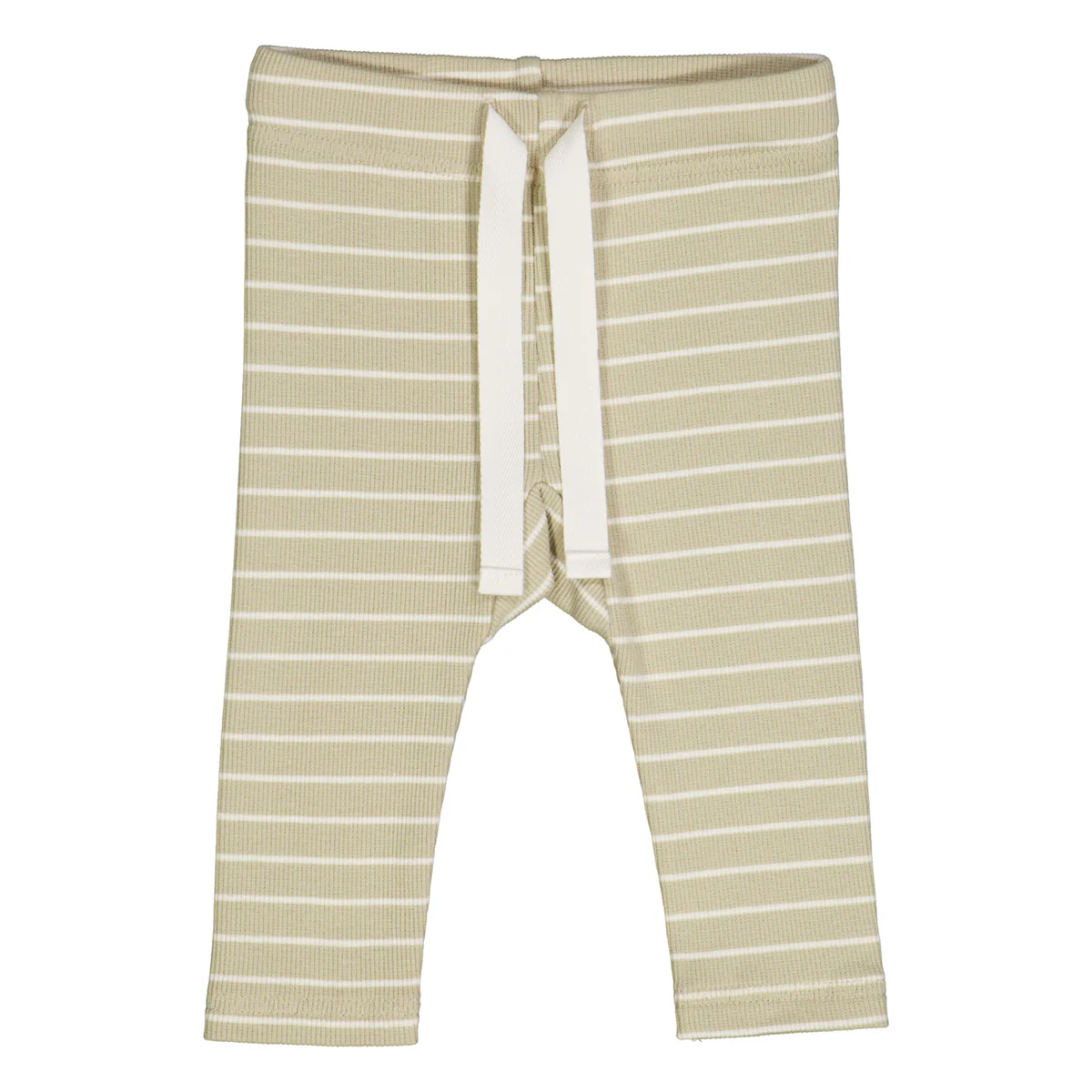 Groen gestreept leggingbroekje voor kleintjes. De groene kleur heet desert green en is olijfgroen. De streepjes zijn crème van kleur. Het broekje heeft een trekkoord aan de bovenkant zodat je de taille van de broek kan aanpassen aan jouw kindje.