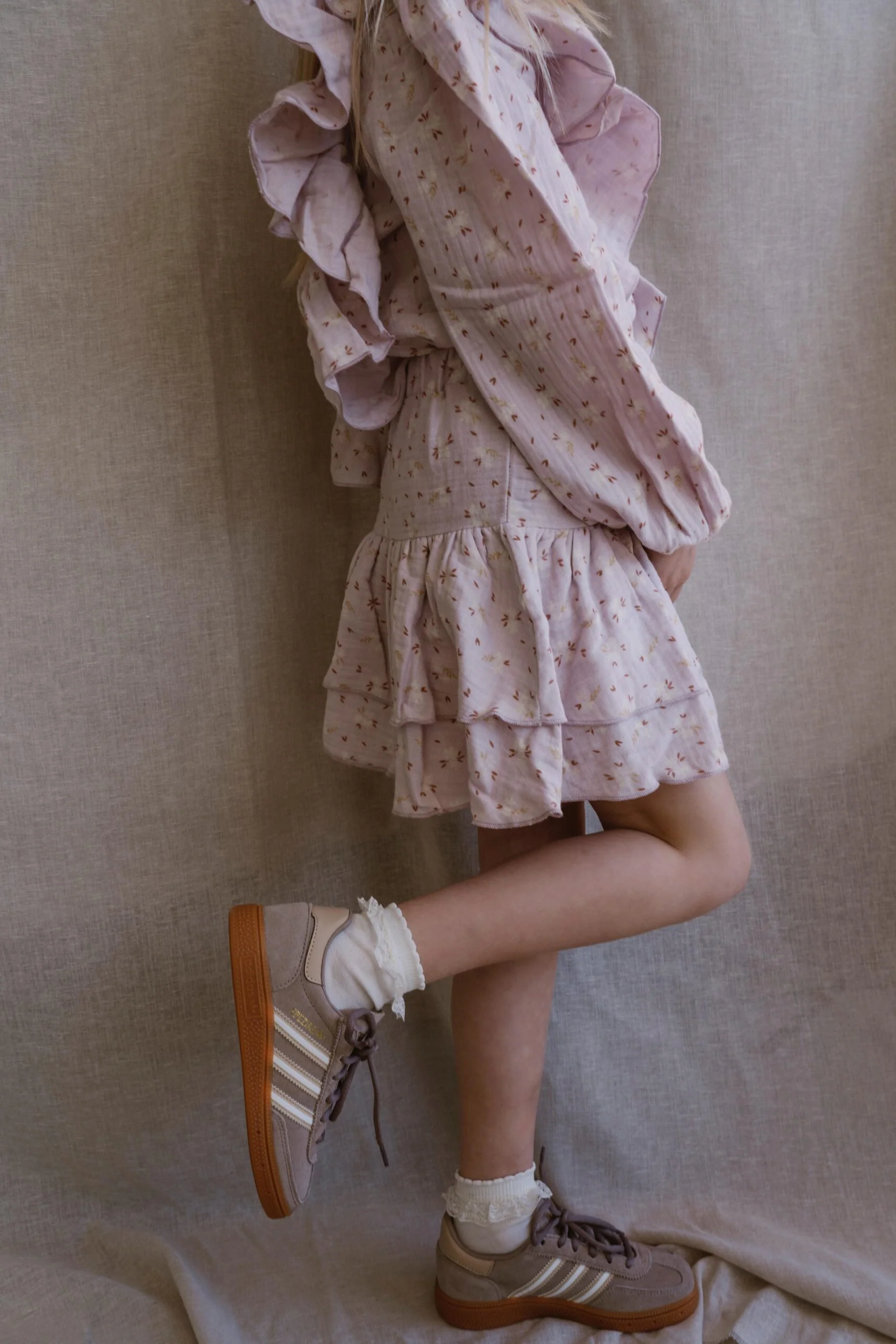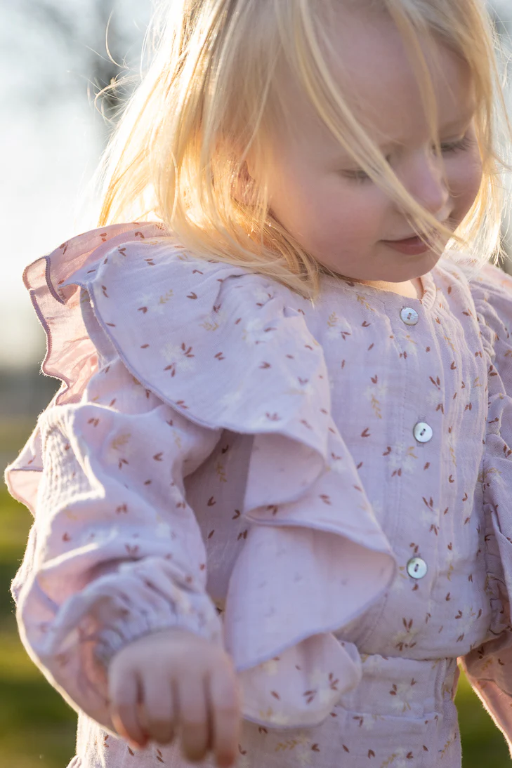 Een prachtige blouse uit de Navy Natural collectie. Deze blouse met volanten een een prachtige rose bloemen print is leuk te combineren met het bijpassende rokje Keet.