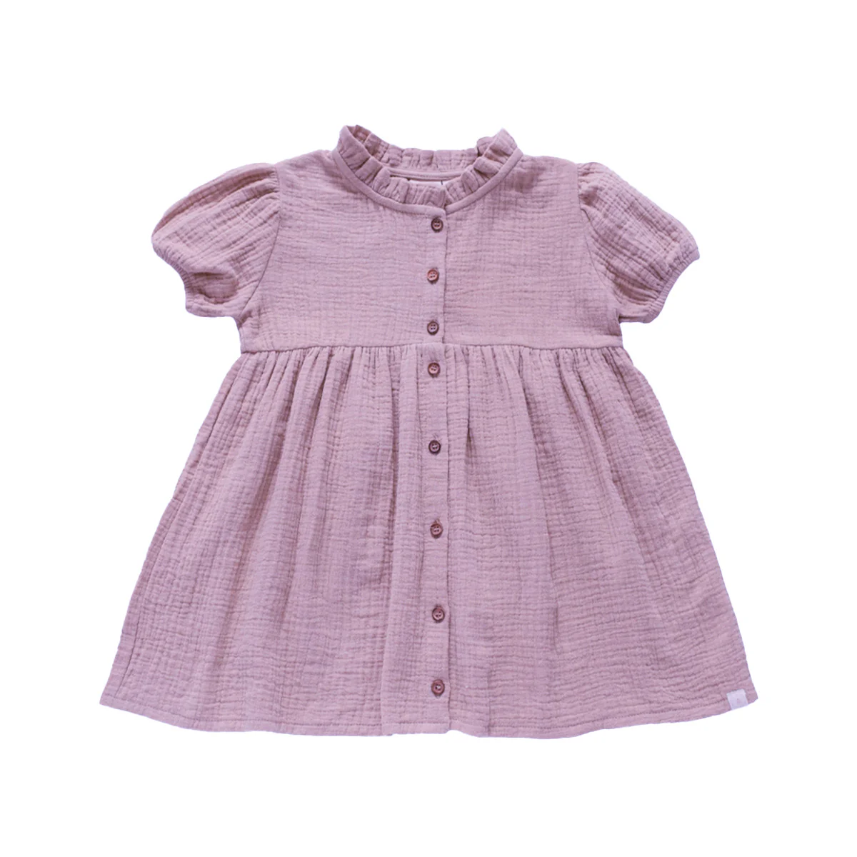 Deze jurk van hydrofiel stof valt klein (kort met name), we adviseren een maat groter te nemen.