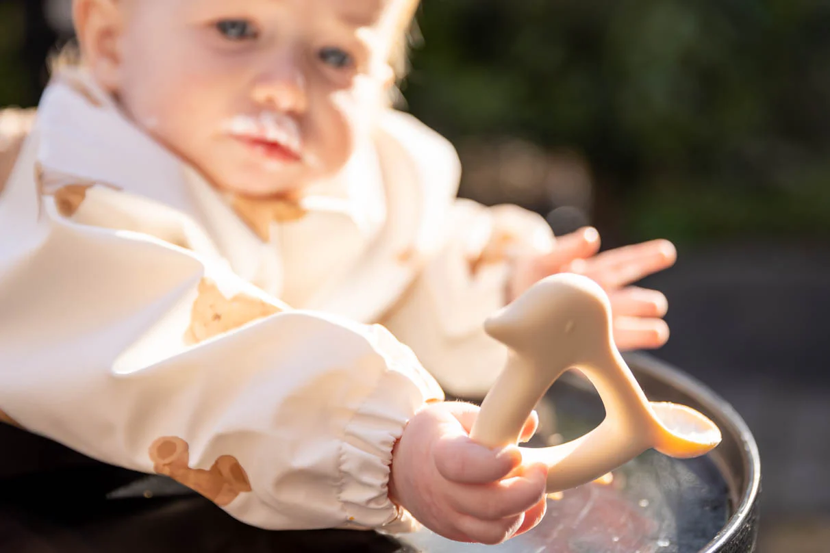 Bella de vogel helpt je kleintje nieuwe smaken ontdekken en zorgt ervoor dat eten een leuke, speelse gebeurtenis is. Dit unieke ontwerp voorkomt dat de lepel te ver in de keel gestoken kan worden en is makkelijk vast te houden door de kleine, wat onhandige, kinderhandjes. Heel geschikt voor de ‘ikkuh-zellluf-doen fase’. Tegelijkertijd kan de lepels als bijtfiguur gebruikt worden om pijnlijk tandvlees te verzachten.