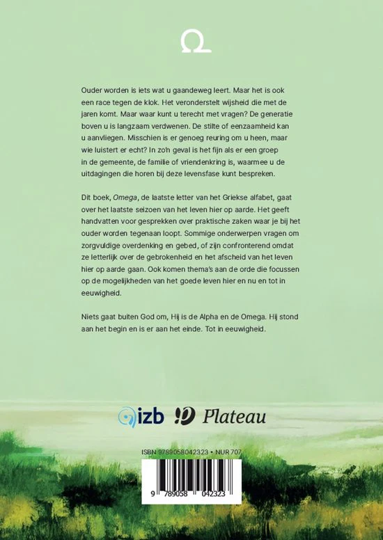 Ouder worden is iets wat u gaandeweg leert. Maar het is ook een race tegen de klok. Het veronderstelt wijsheid die met de jaren komt. Maar waar kunt u terecht met vragen? De generatie boven u is langzaam verdwenen. De stilte of eenzaamheid kan u aanvliegen. Misschien is er genoeg reuring om u heen, maar wie luistert er echt? In zo’n geval is het fijn als er een groep in de gemeente, de familie of vriendenkring is, waarmee u de uitdagingen die horen bij deze levensfase kunt bespreken. Dit boek, ‘Omega’, de laatste letter van het Griekse alfabet, gaat over het laatste seizoen van het leven hier op aarde. Het geeft handvatten voor gesprekken over praktische zaken waar je bij het ouder worden tegenaan loopt. Sommige onderwerpen vragen om zorgvuldige overdenking en gebed, of zijn confronterend omdat ze letterlijk over de gebrokenheid en het afscheid van het leven hier op aarde gaan. Ook komen thema’s aan de orde die focussen op de mogelijkheden van het goede leven hier en nu en tot in eeuwigheid. Niets gaat buiten God om, Hij is de Alpha en de Omega. Hij stond aan het begin en is er aan het einde. Tot in eeuwigheid.