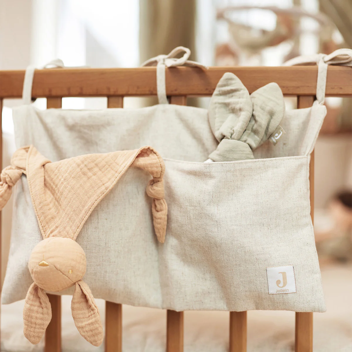 Weg met al die prullaria! Met deze fijne opberzak is al het rondslingerende babyspeelgoed of andere spullen, verleden tijd. Door het gebruik van linnen heeft de opbergzak een neutrale en minimalistische look en is het geen doorn in het oog om hem aan de box te hangen of in de babykamer van je kleintje. Je kunt de opbergzak gemakkelijk ophangen door een strik in de touwtjes te maken. Bevestig de opberger aan de box op aan het ledikant.