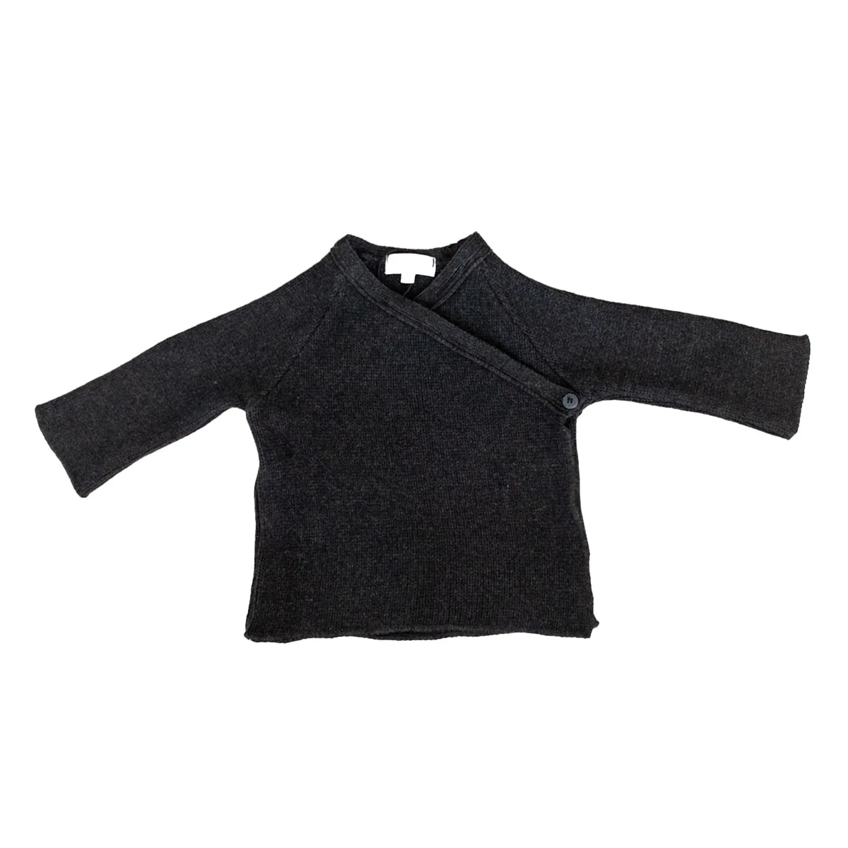 Dit overslag vestje heeft een mooie diep grijze/antraciet kleur. Dit vestje hoeft niet over het hoofd heen aangetrokken te worden en dat vinden baby’s prettig. In dezelfde kleur als het overslag vestje hebben we ook een legging beschikbaar, maar dit donkerkleurige baby vestje combineert juist ook heel mooi met wat lichtere tinten of denim.