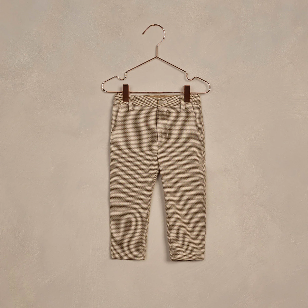 Deze Sebastian Pants van Nora Lee zijn gemaakt van een warm beige pied-de-poule-stof. De broek heeft een verstelbare elastische tailleband, een ritssluiting met knopen en zakken. Perfecte nette broek voor de Kerst, bruiloft of andere feestelijke gelegenheden.