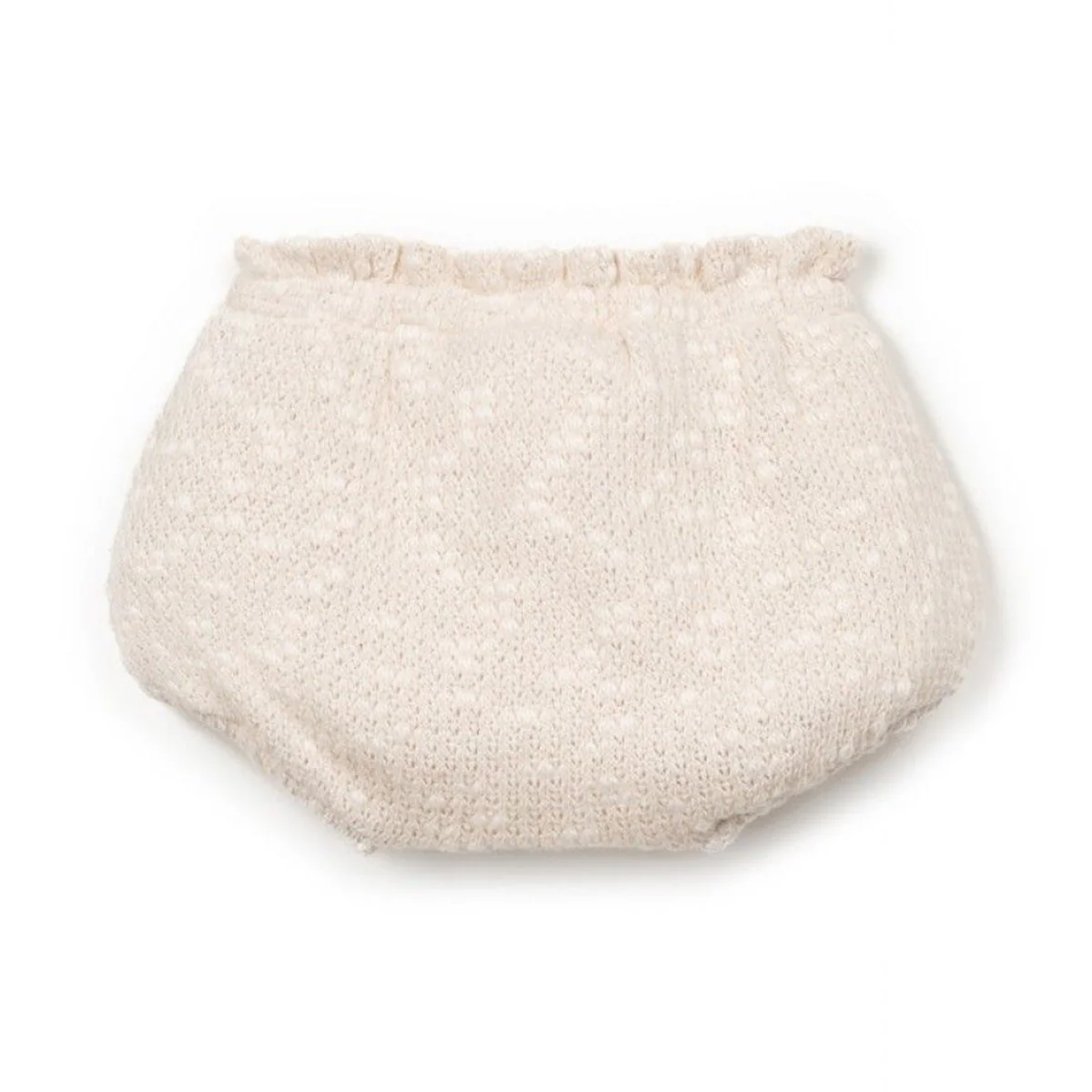 Schattige bloomer broekje voor baby meisjes van Play Up. Speels ontwerp met structuur in de stof. De bloomer met de kleur ecru heeft een elastische tailleband en elastische beenopeningen.
