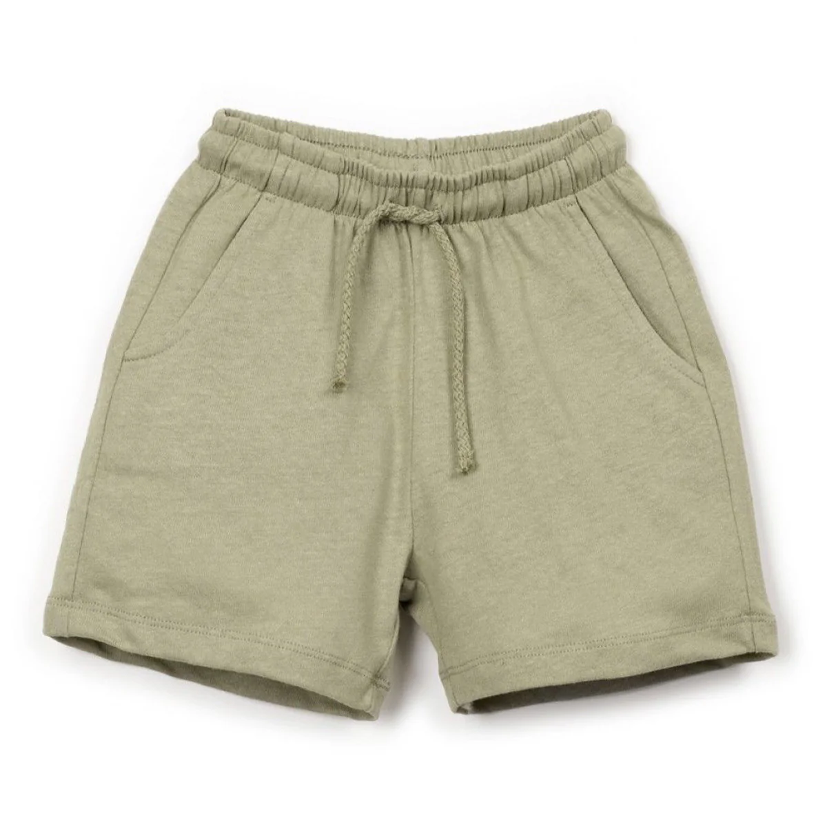 Deze shorts van Play Up zijn gemaakt van een zachte jersey, een mix van biologisch katoen en linnen. De shorts hebben de kleur kaki groen. Ze hebben een verstelbare trekkoord en zakken.