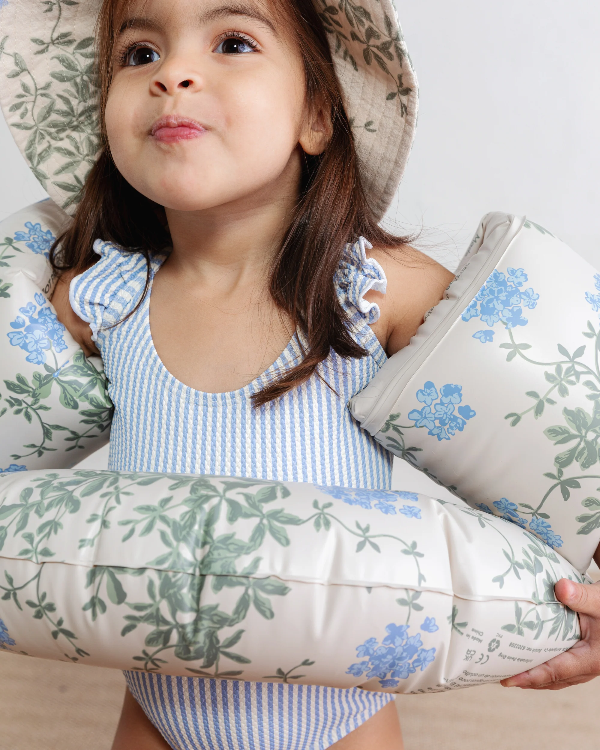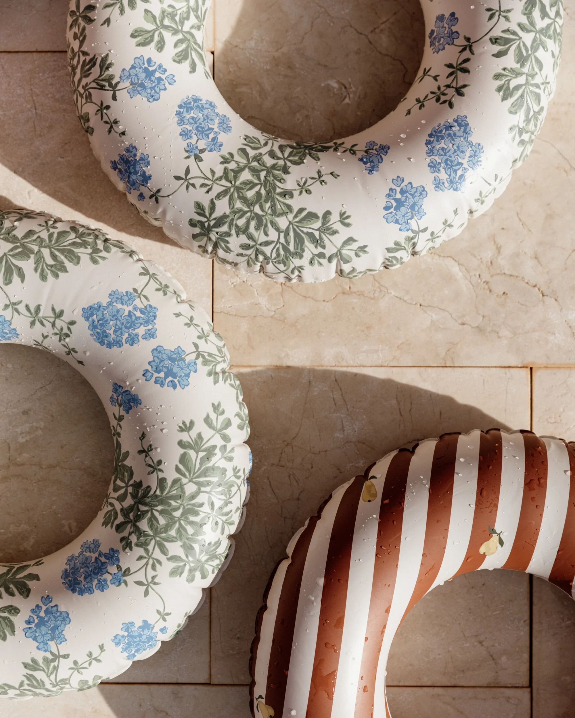 Prachtige zwemband met Plumbago bloemen print van Garbo & Friends. De Garbo & Friends zwemband is gemaakt van duurzaam 0,25 mm dik PVC en gaat langer dan een seizoen of twee mee. Bedrukt met niet-giftige kleuren en verpakt in een stofzak van 100% biologisch katoen. De zwemband is onafhankelijk getest en goedgekeurd in overeenstemming met EN71-8 en CE/UKCA-markering. Daarnaast is het zwembad vrij van schadelijke stoffen, het is getest en goedgekeurd in overeenstemming met de REACH-regelgeving.