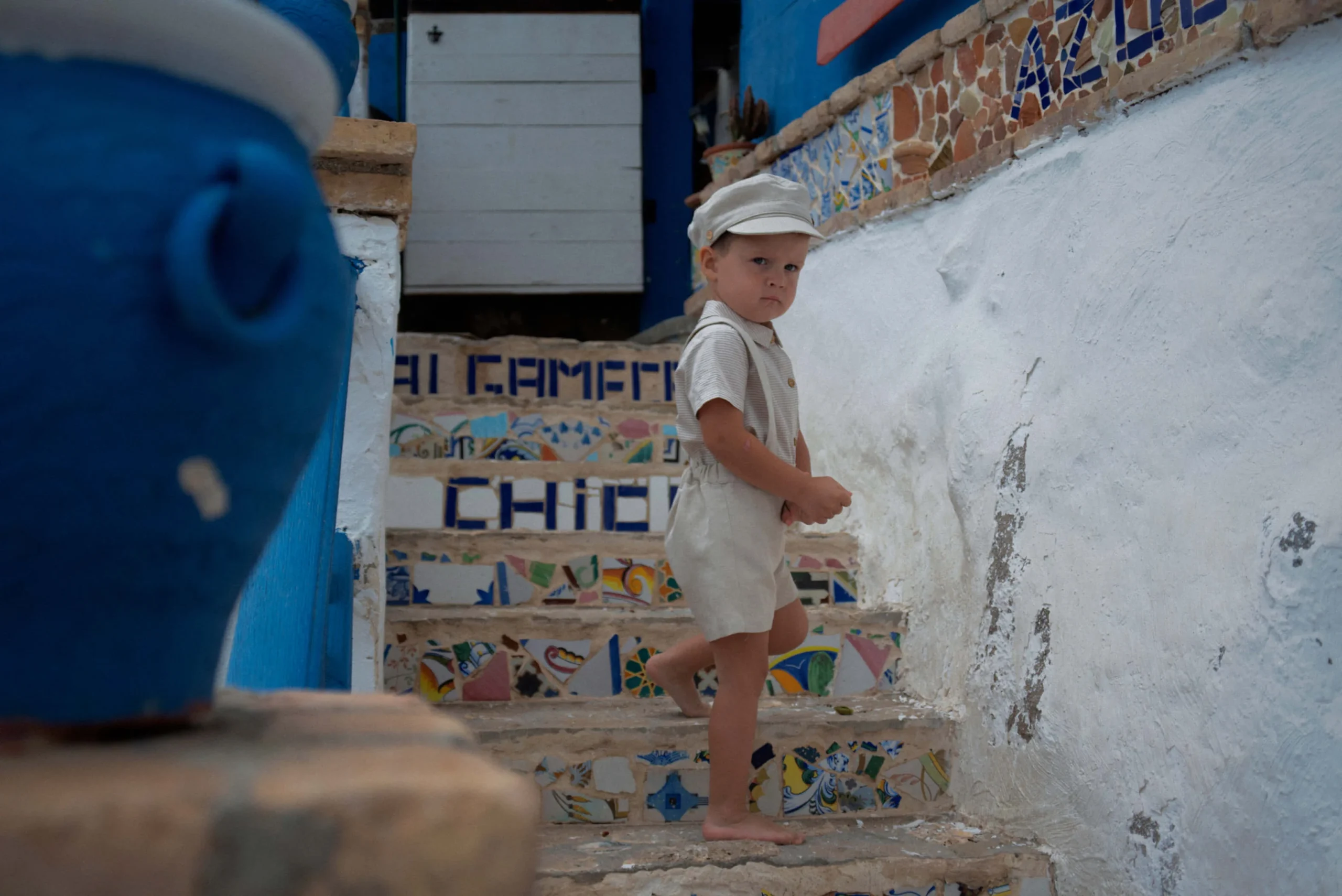Maatadvies: het Spaanse merk Popelin valt klein. Van deze dungarees kun je een maat groter nemen.