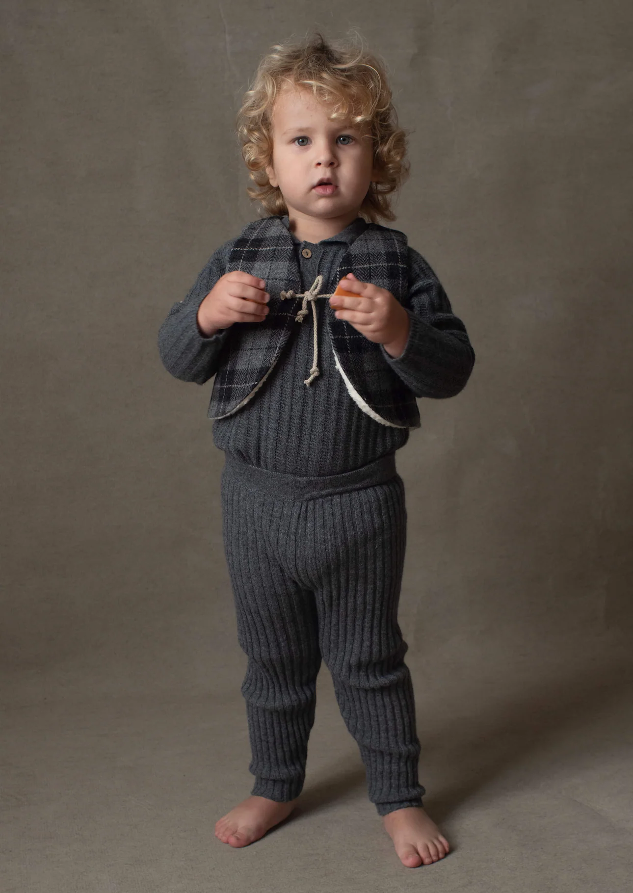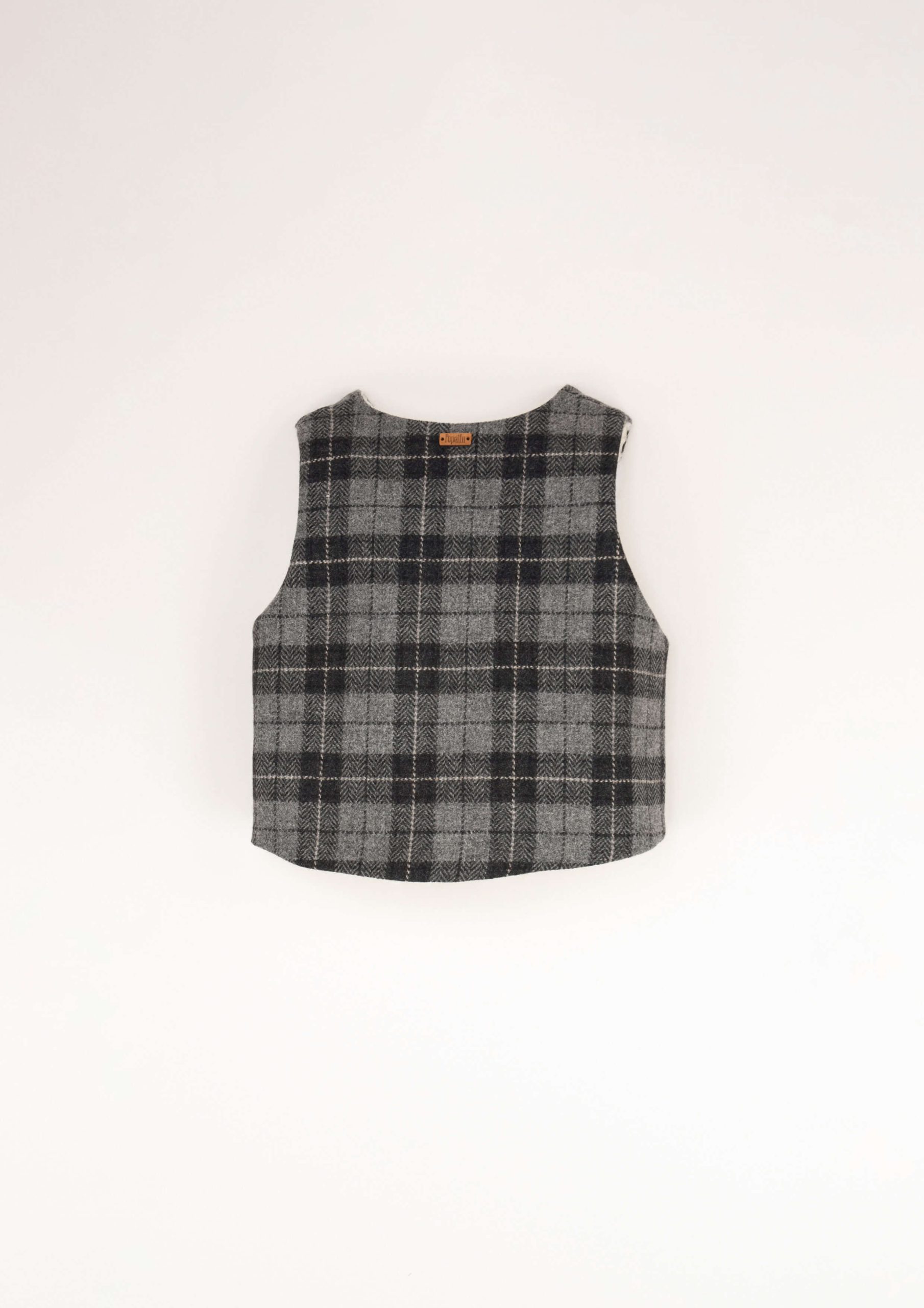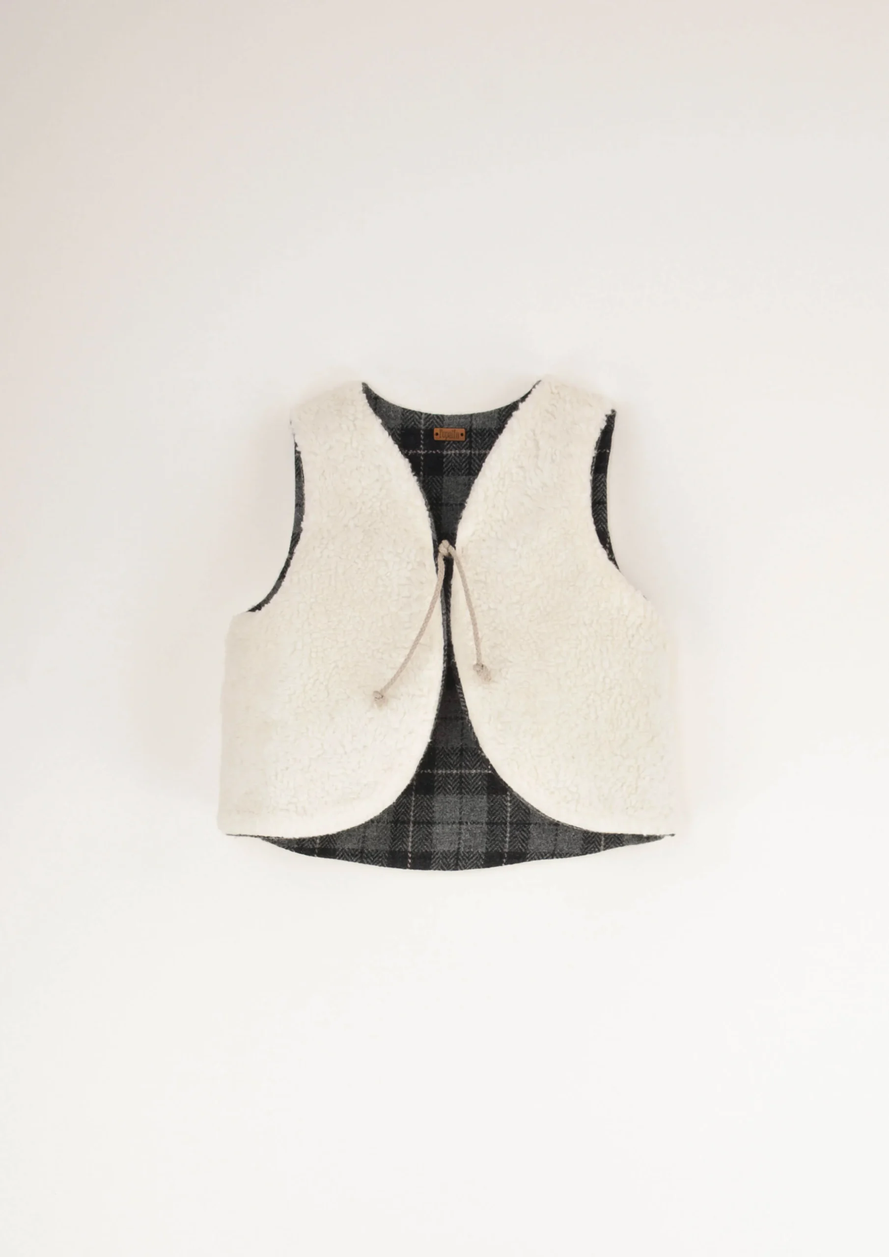 Een wollen gilet maakt elk outfit compleet en is heerlijk warm. Het ruitjes patroon maakt het gilet zowel schattig als stoer. Het gilet sluit aan de voorkant middels een touwtje. De binnenkant van het wollen gilet is ook erg mooi afgewerkt met off-white teddy stof. Dit geruite gilet is leuk voor jongens. We hebben het gilet ook nog in de kleur off white, deze kan door zowel jongens als meisjes gedragen worden.