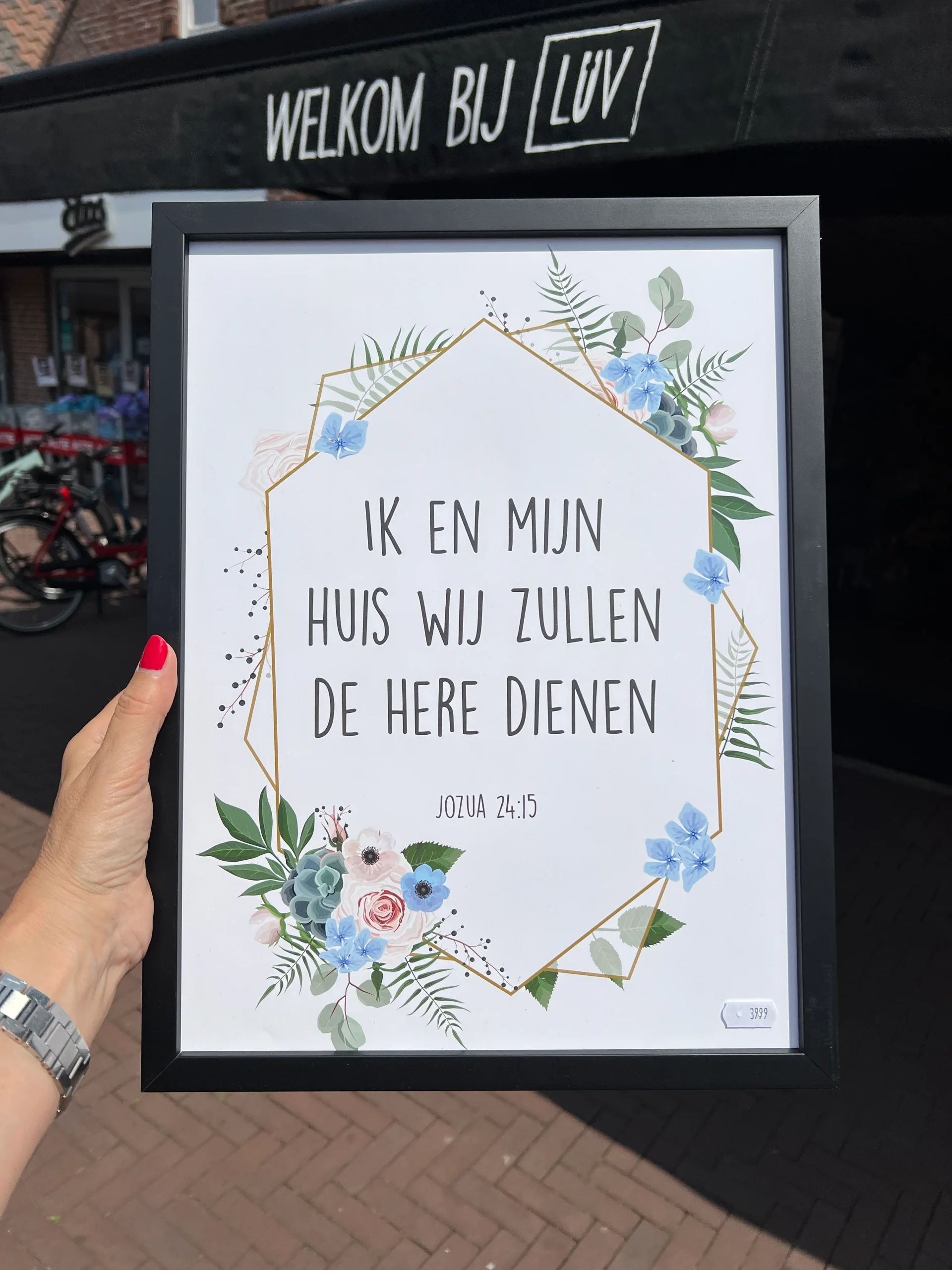 Prachtige poster met christelijke tekst: Ik en mijn huis, wij zullen de Here dienen uit Jozua 24:15 uit het Oude testament van de Bijbel.