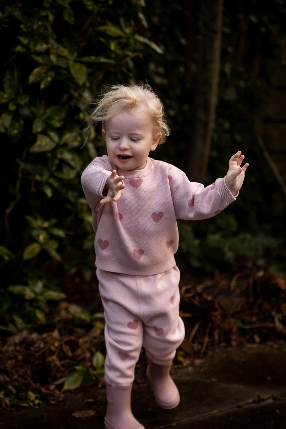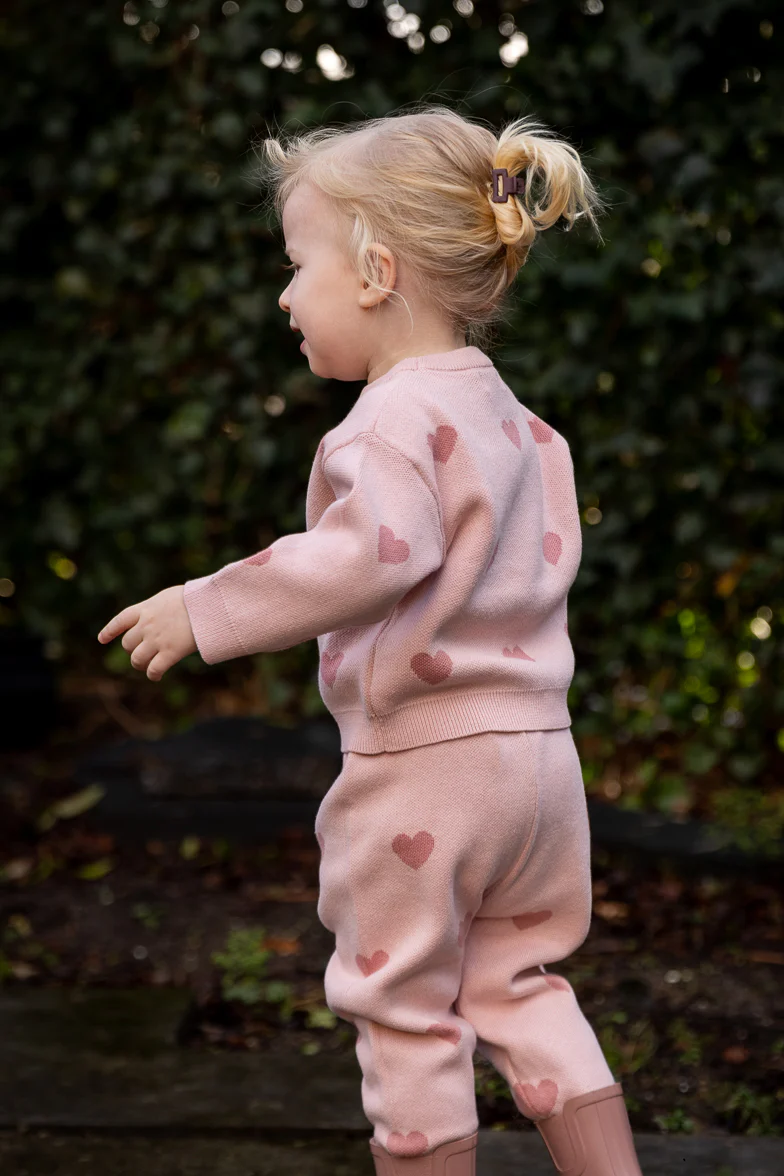 Voor deze leuke gebreide broek hebben we ook een bijpassende trui beschikbaar met dezelfde hartjes print.