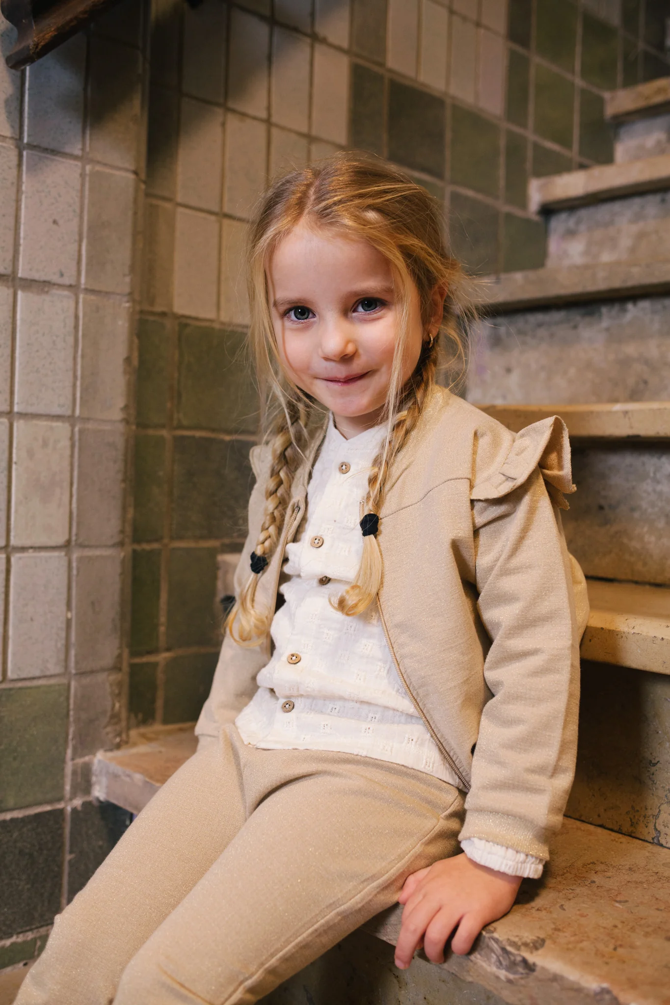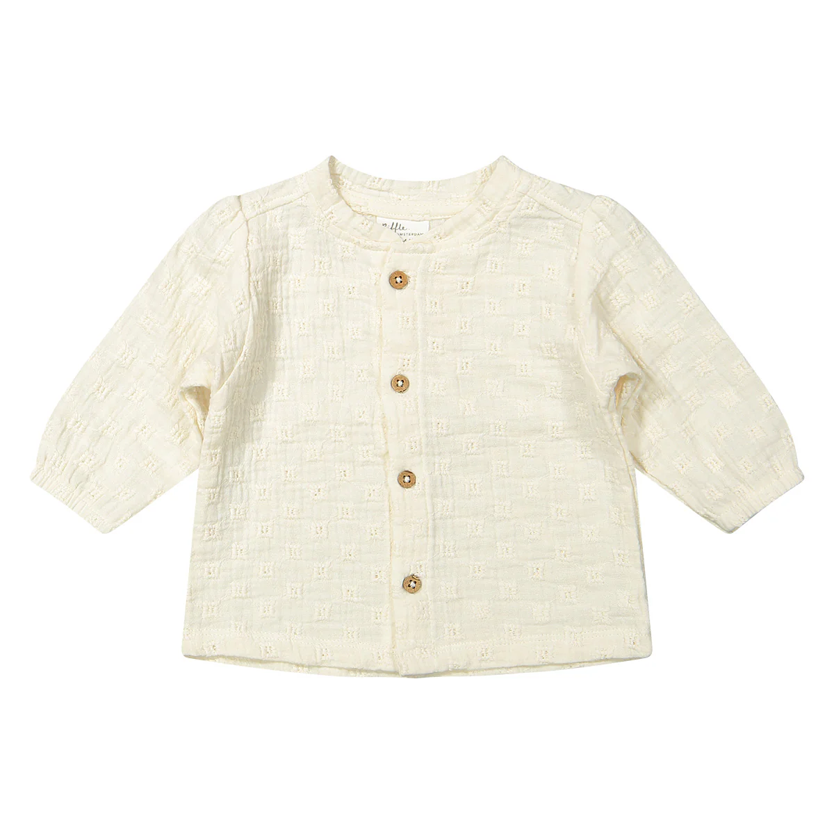 Prachtige blouse voor meiden. Blouse Cleo van Riffle Amsterdam is gemaakt van een geweven offwhite embroidery stof. De blouse heeft geen kraagje.