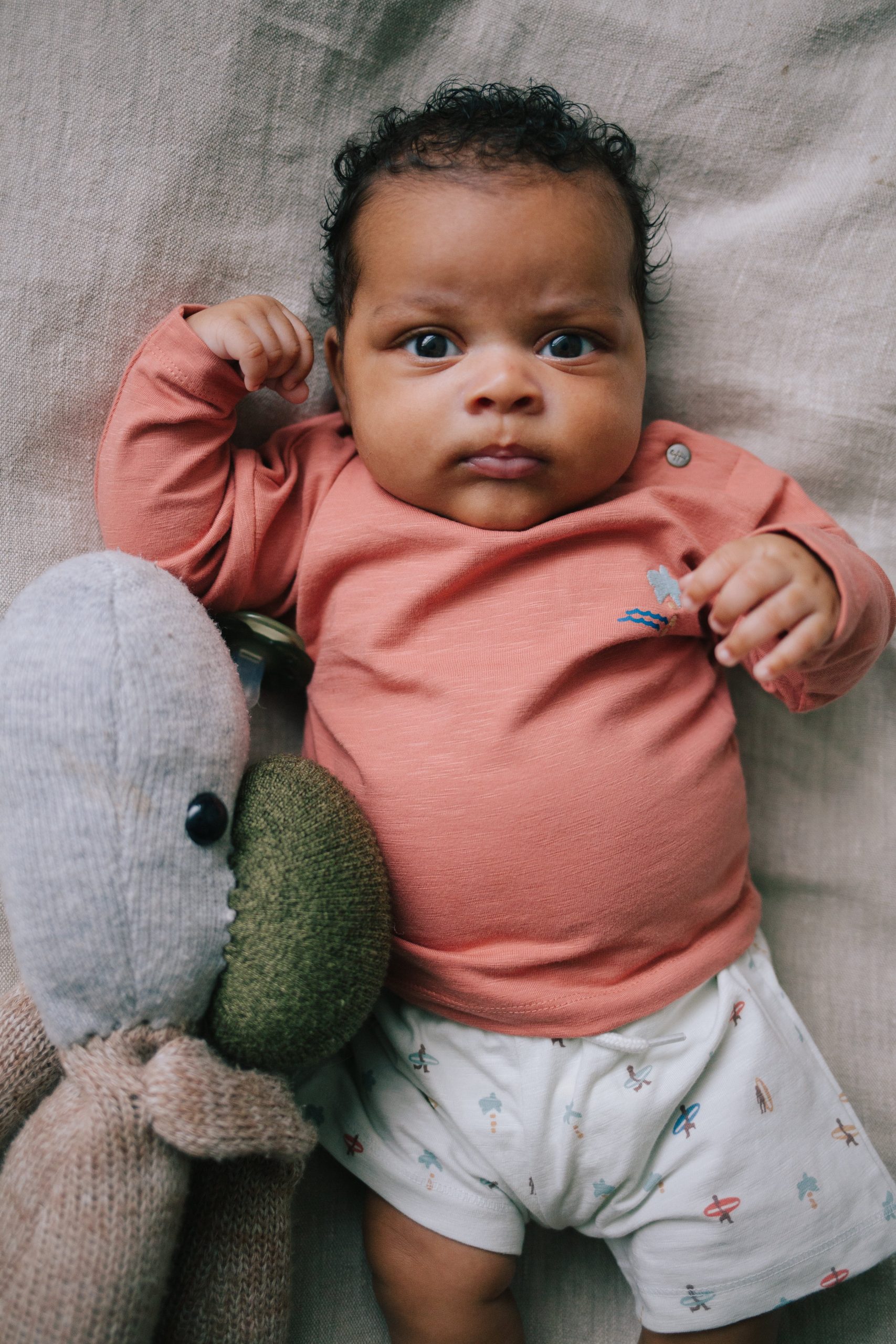 Shorts met zomerse print van surfplanken. Deze korte broek van Riffle Amsterdam is voor jongens, maar kan ook als unisex.