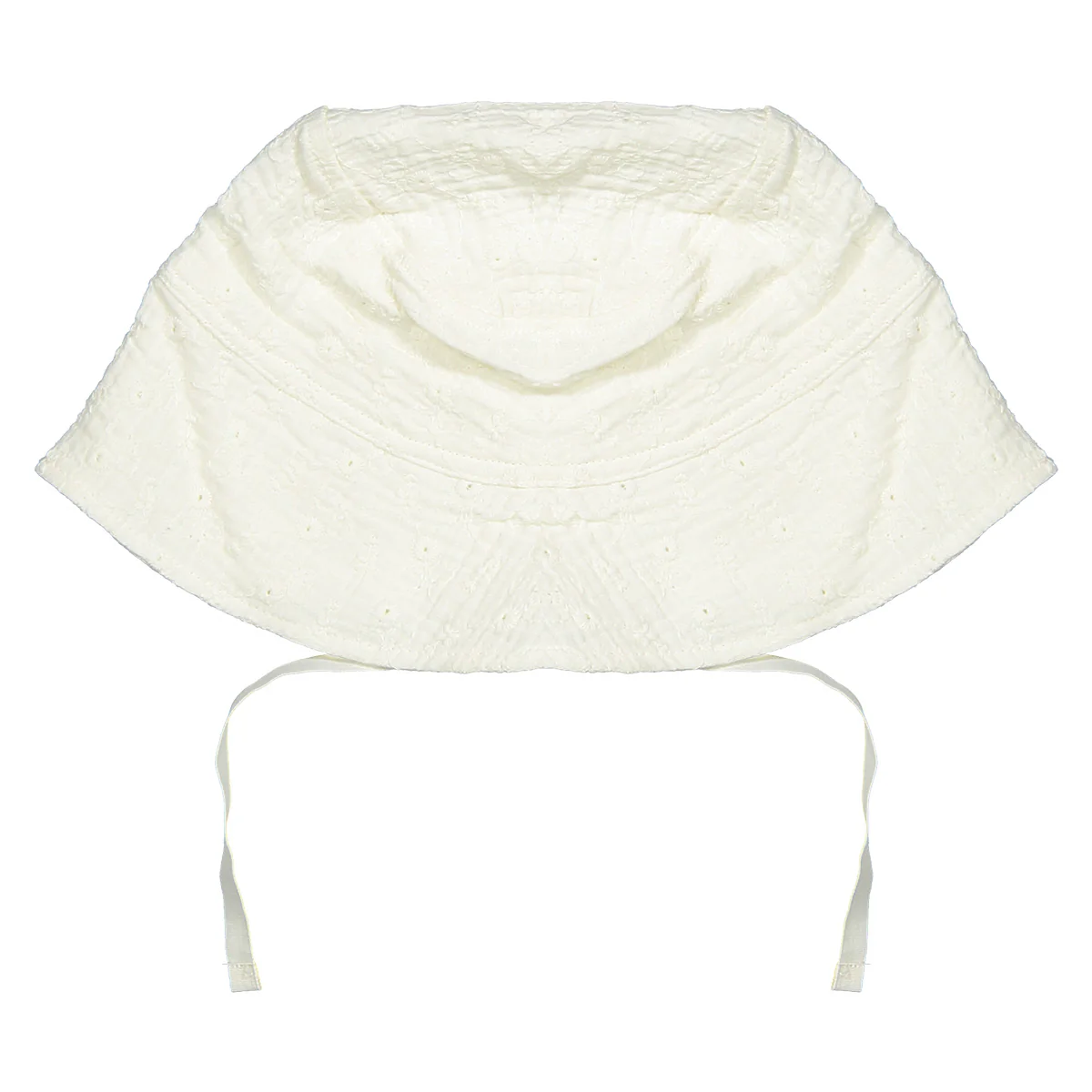 Schattig zonnehoedje voor meisjes. Zonnehoed Bailey van Riffle Amsterdam is gemaakt van geweven broderie stof in de kleur offwhite.