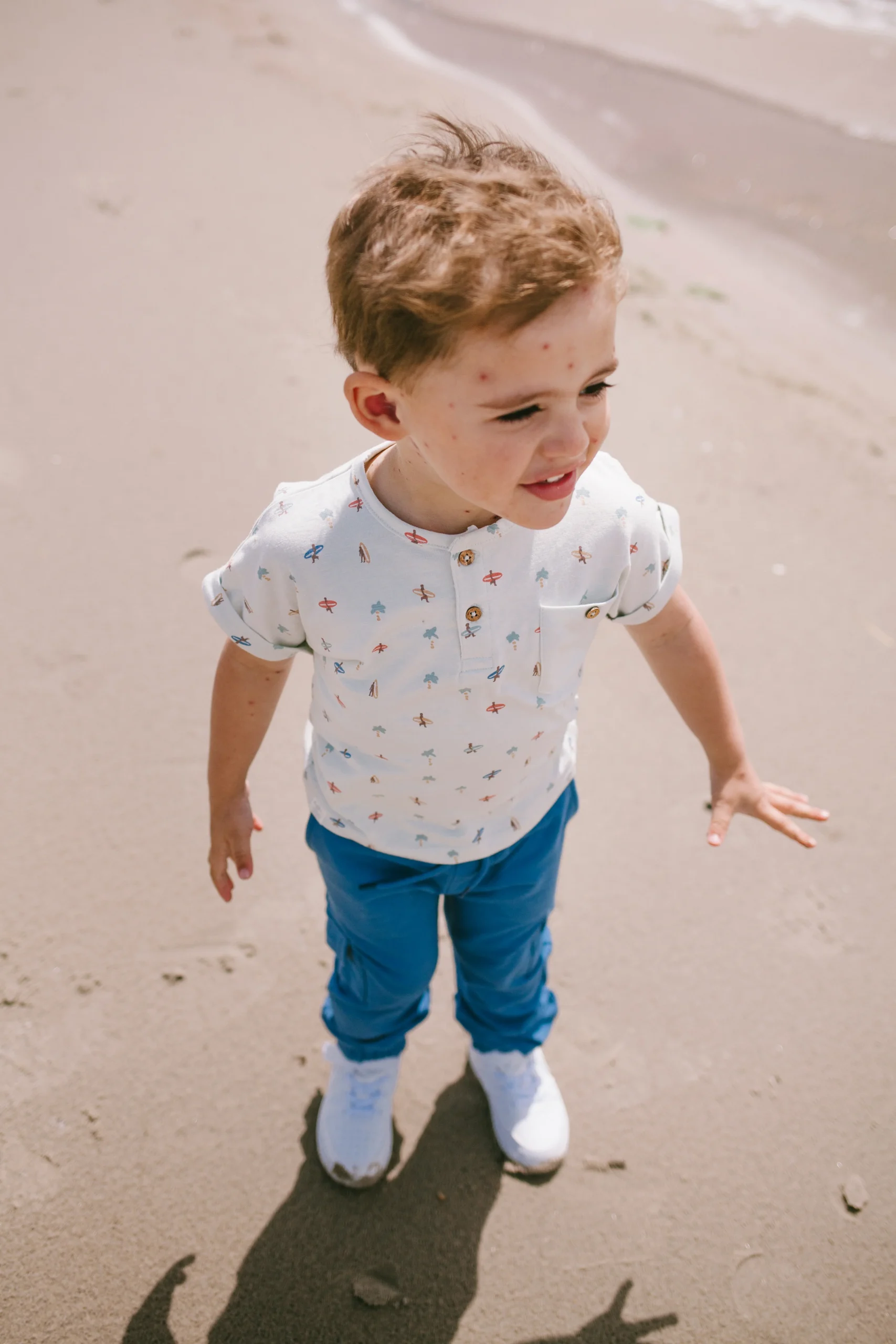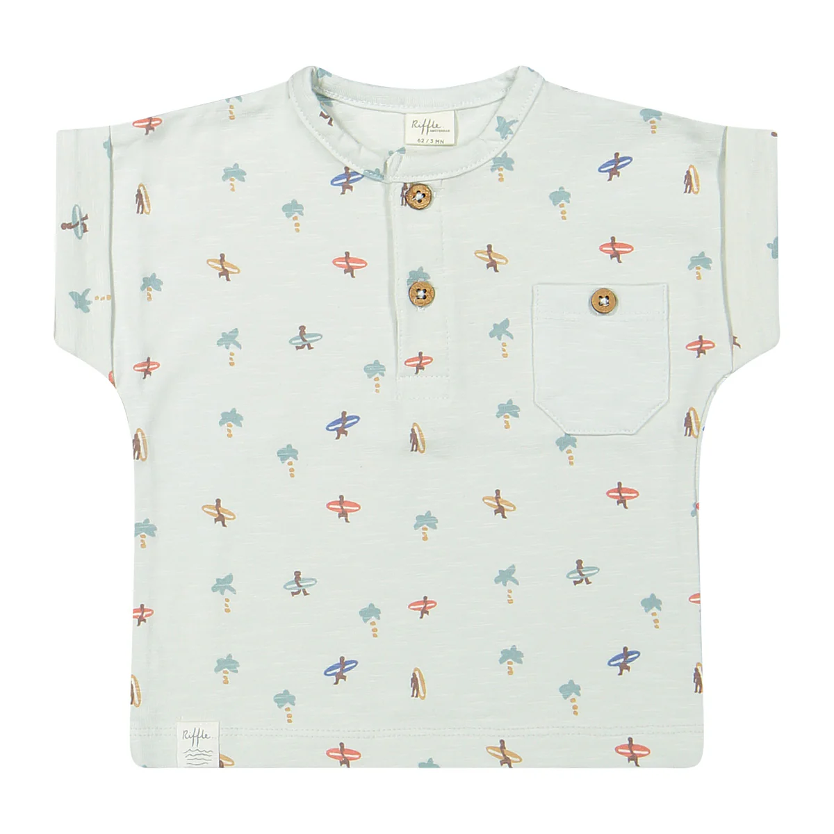 Zomers T-shirt van Riffle Amsterdam met aop strand en surfplanken print.