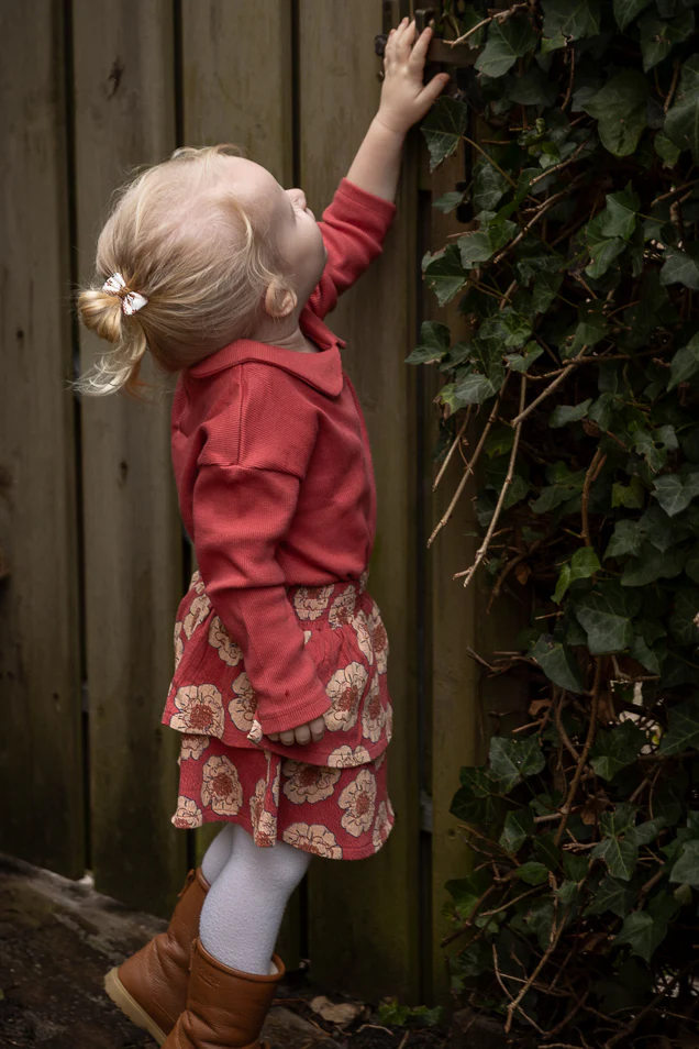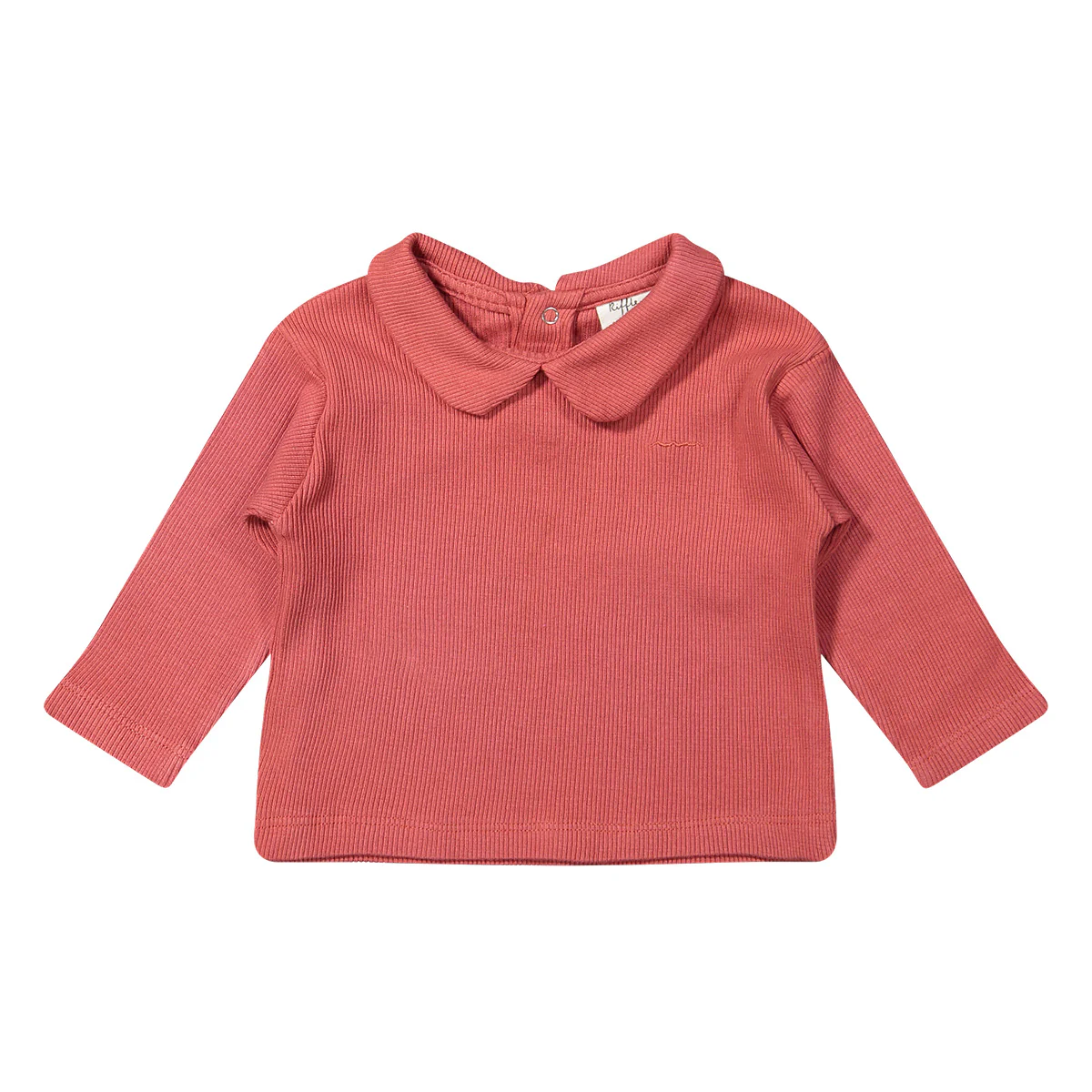 Koraalroze rib shirt van Riffle Amsterdam met schattig kraagje. Shirt Mell derby pink combineert mooi met de pink flower prints van Riffle Amsterdam