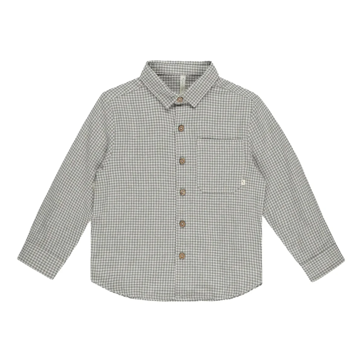 Een klassiek jongensoverhemd met lange mouwen en kraag, met kokosknopen middenvoor. Het overhemd heeft een prachtige gingham ruit in de kleur forest. Dit is een groene tint.