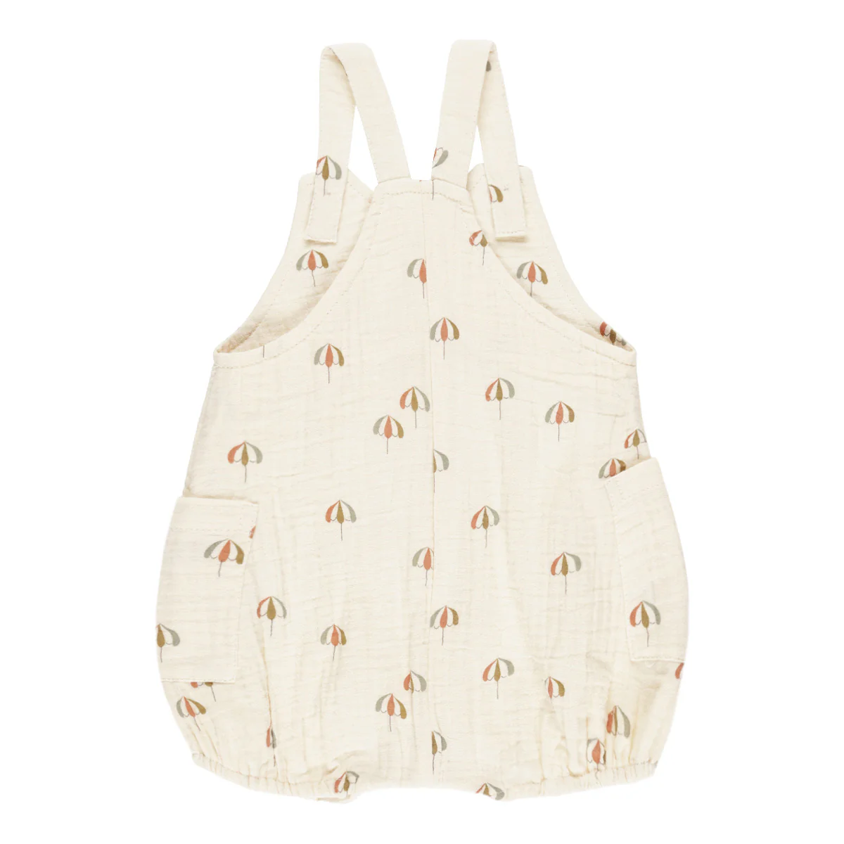 Romper Lou Umbrellas heeft schouderbandjes met kokosnoot knoopjes, zakken en drukknopen aan de onderkant.
