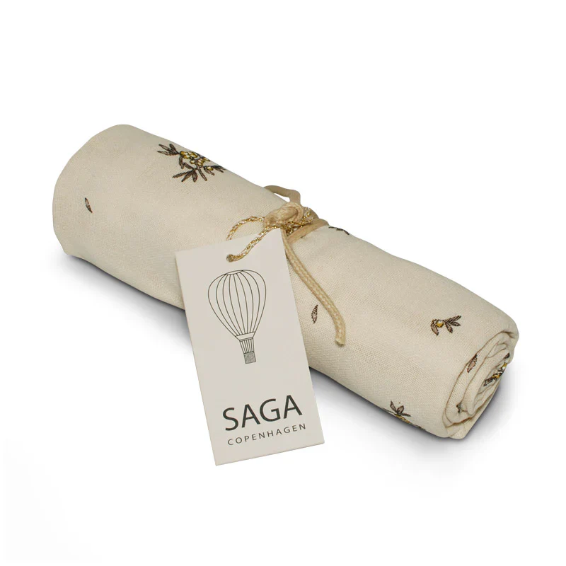 Schattige hydrofiele doek met Duindoorn bloemetjes.