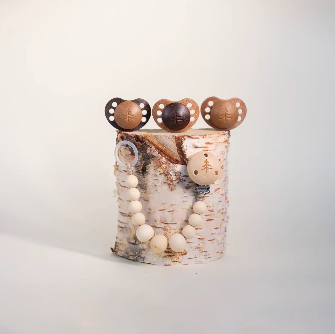 De fopspenen van het Zweedse merk Skogen Baby zijn een hele goede keuze voor ouders die op zoek zijn naar een klimaatvriendelijke, duurzame en veilige optie voor hun kleintje. Deze fopspenen zijn ontwikkeld met het milieu in gedachten en zijn gemaakt van 100% natuurlijke rubber, wat betekent dat ze vrij zijn van schadelijke chemicaliën zoals BPA. Het is schild is gemaakt van lichtgewicht hout (beuken en/of kokos).