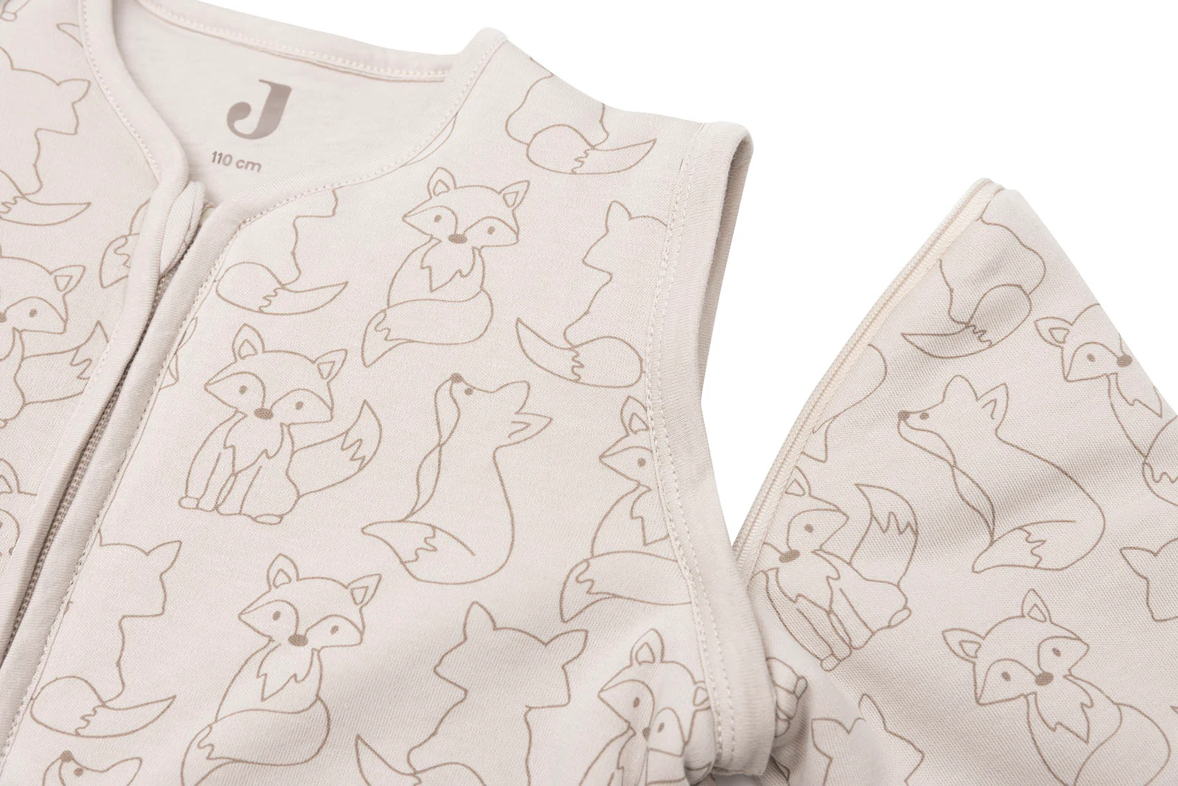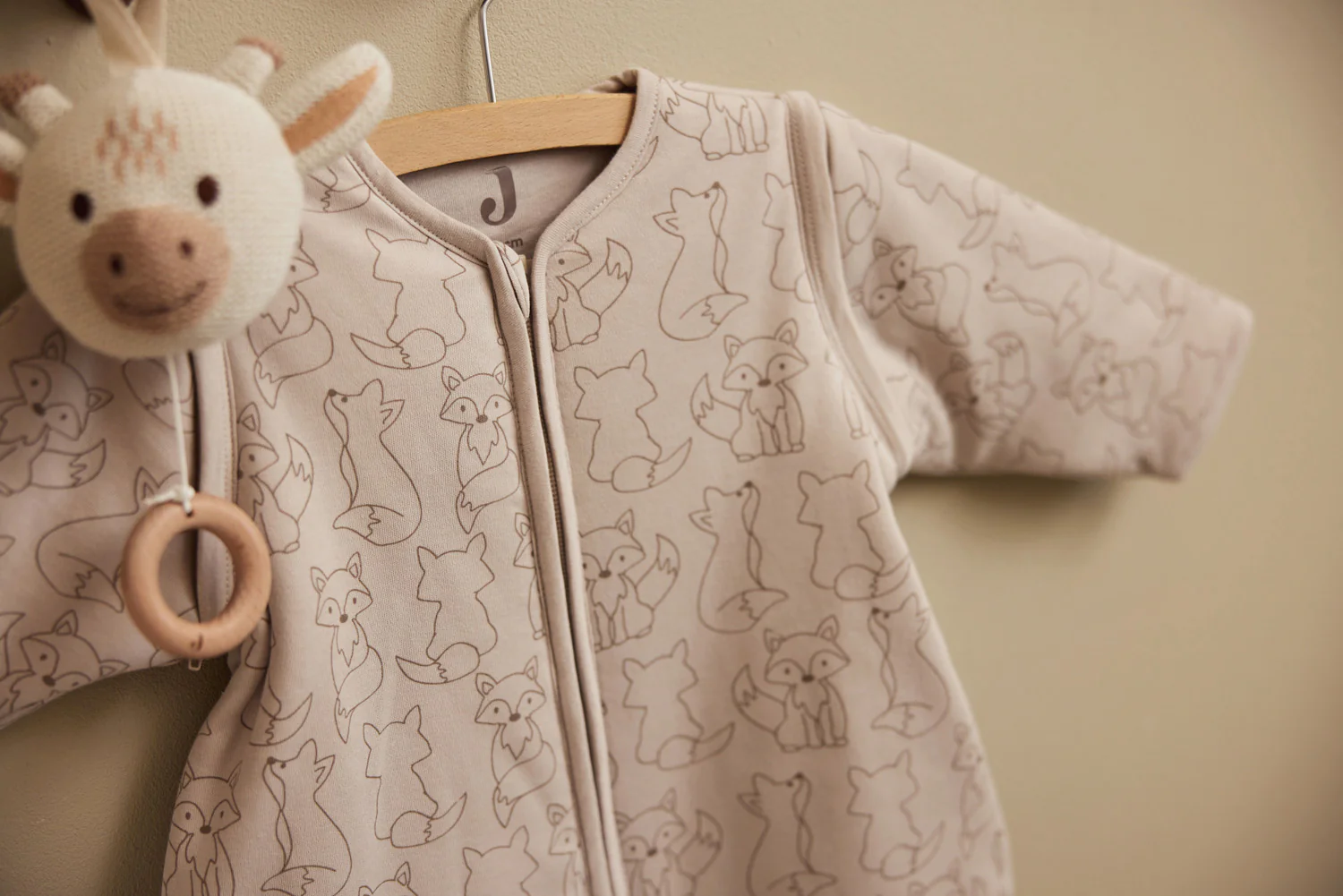 Slaapzak met een vossen printje. De basis kleur van deze slaapzak is een grijs/beige tint (nougat). Beschikbaar in 70, 90 en 110cm. Zo tover je de slaapzak Fox om van een TOG-waarde van 3.0 voor de koude winterdagen naar een TOG-waarde 2.0 voor de frisse nachten in de lente en het najaar. Een slaapzak geeft jouw baby een geborgen gevoel, geeft warmte én beperkt de bewegingsvrijheid. Wel zo fijn met jouw actieve deugniet.