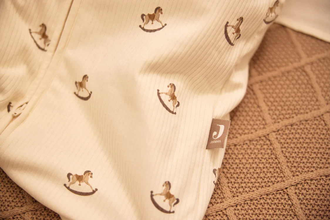 Super schattige winter slaapzak voor baby’s met hobbelpaardjes. Deze leuke slaapzak komt uit het Nostalgic Ride thema van Jollein. Deze fijne baby slaapzak heeft afritsbare mouwen. Zo tover je hem om van een TOG-waarde van 3.5 (met mouwen) voor de koude winterdagen naar een TOG-waarde 2.5 (zonder mouwen) voor de frisse nachten in de lente en het najaar.