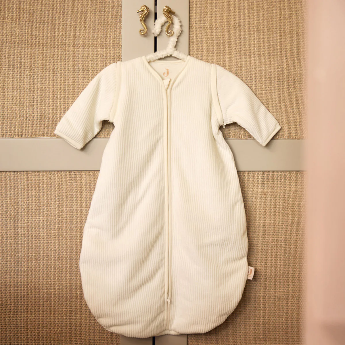 Slaapzak rib rond – afritsbare mouwen – ivory