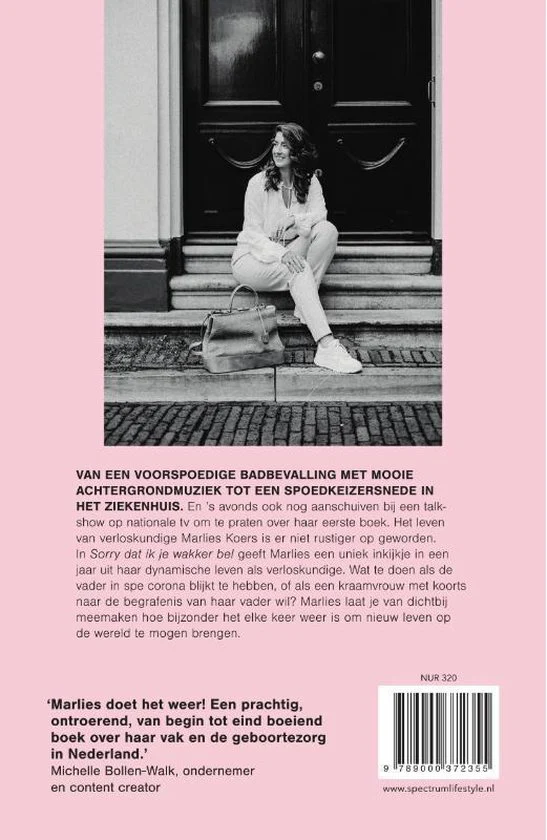 In Sorry dat ik je wakker bel geeft Marlies een uniek inkijkje in een jaar uit haar dynamische leven als verloskundige. Wat te doen als de vader in spe corona blijkt te hebben, of als een kraamvrouw met koorts naar de begrafenis van haar vader wil? Marlies laat je van dichtbij meemaken hoe bijzonder het elke keer weer is om nieuw leven op de wereld te mogen brengen.
