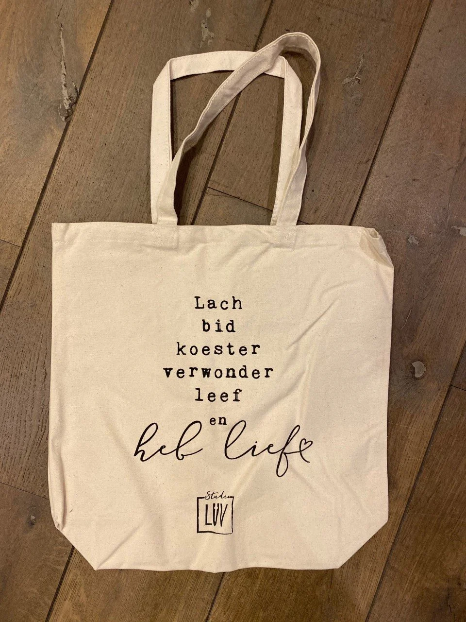 Opdruk: Lach bid koester verwonder leef en heb lief