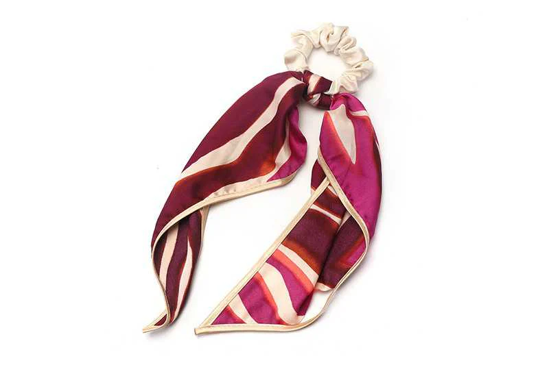 Dé zomertrend van 2024: Haar scrunchies met een mooi sjaaltje. Weg met die saaie elastiekjes, deze scrunchies geven fleur aan je outfit! De scrunchie zelf heeft een mooie parelmoer kleur en het sjaaltje een vrolijke en stijlvolle kleurige print.